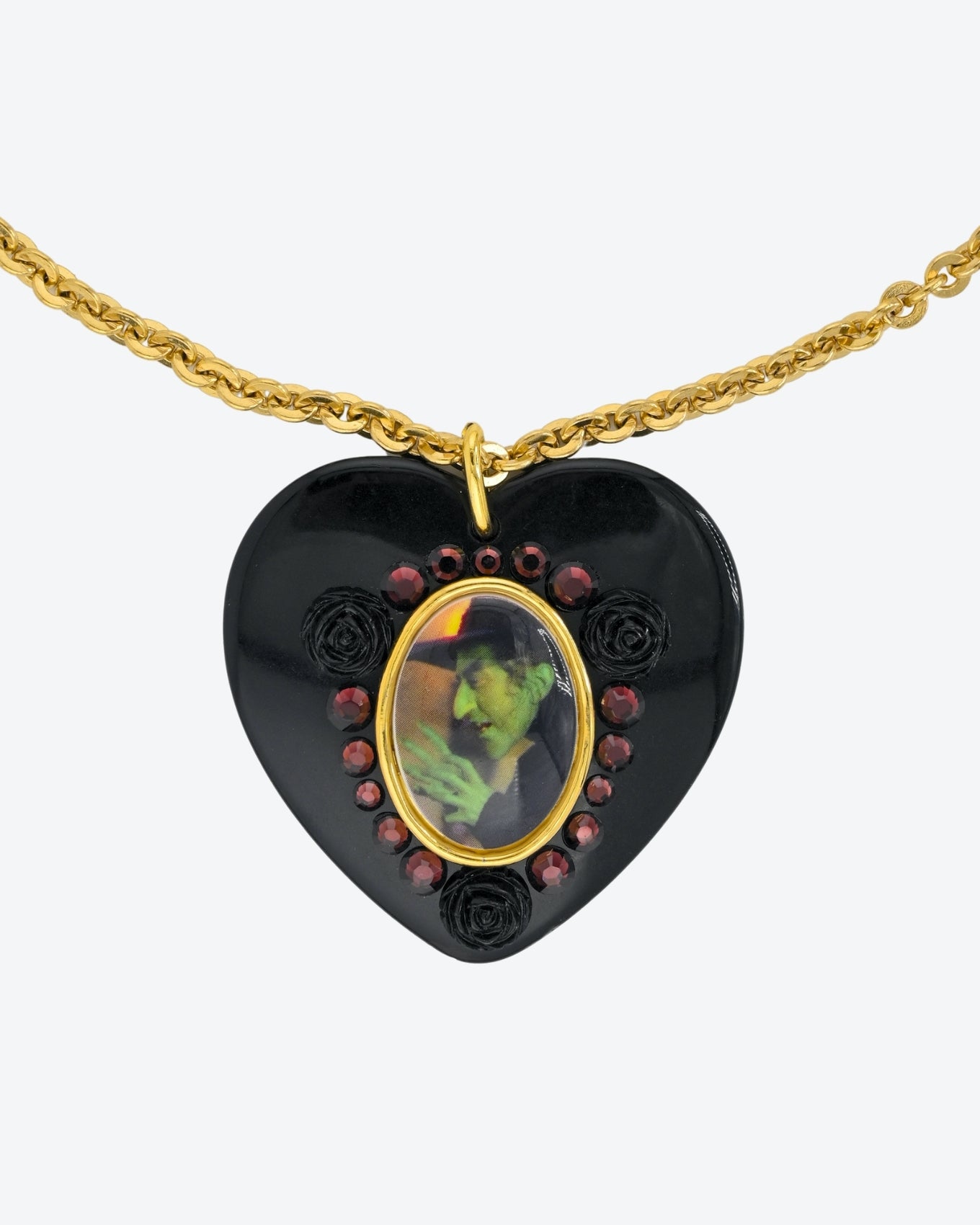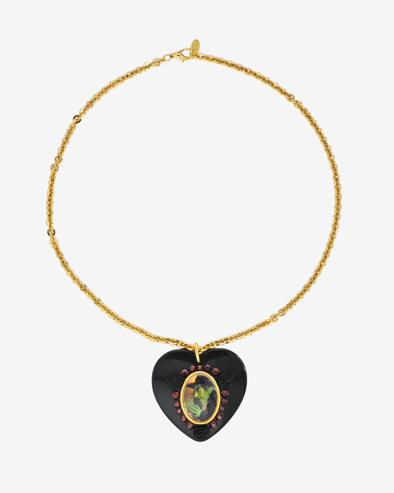 From the Wizard Of Oz x Tarina Tarantino collection archive, the Elphaba Heart Necklace features an Elphaba cameo framed in Swarovski Crystal.