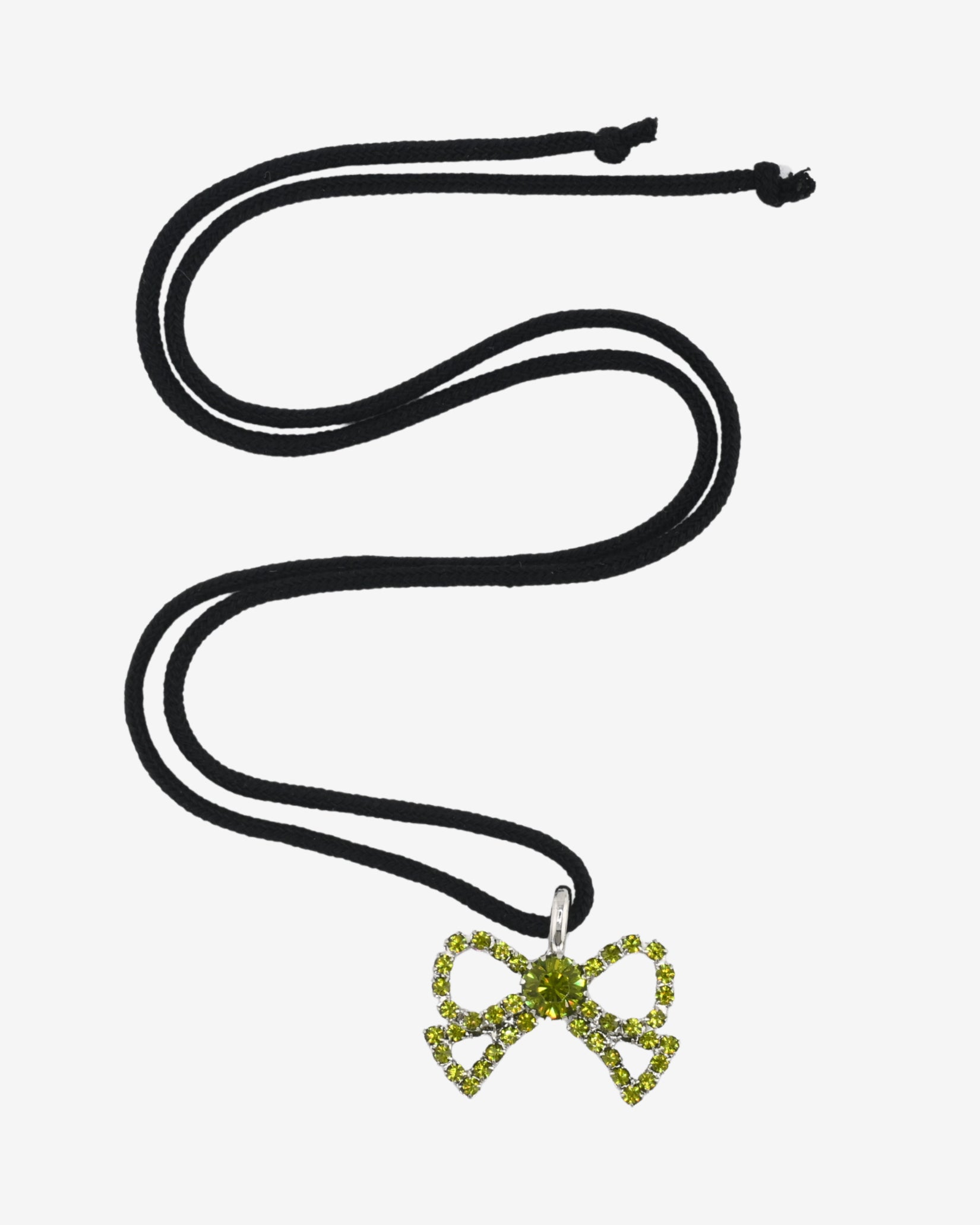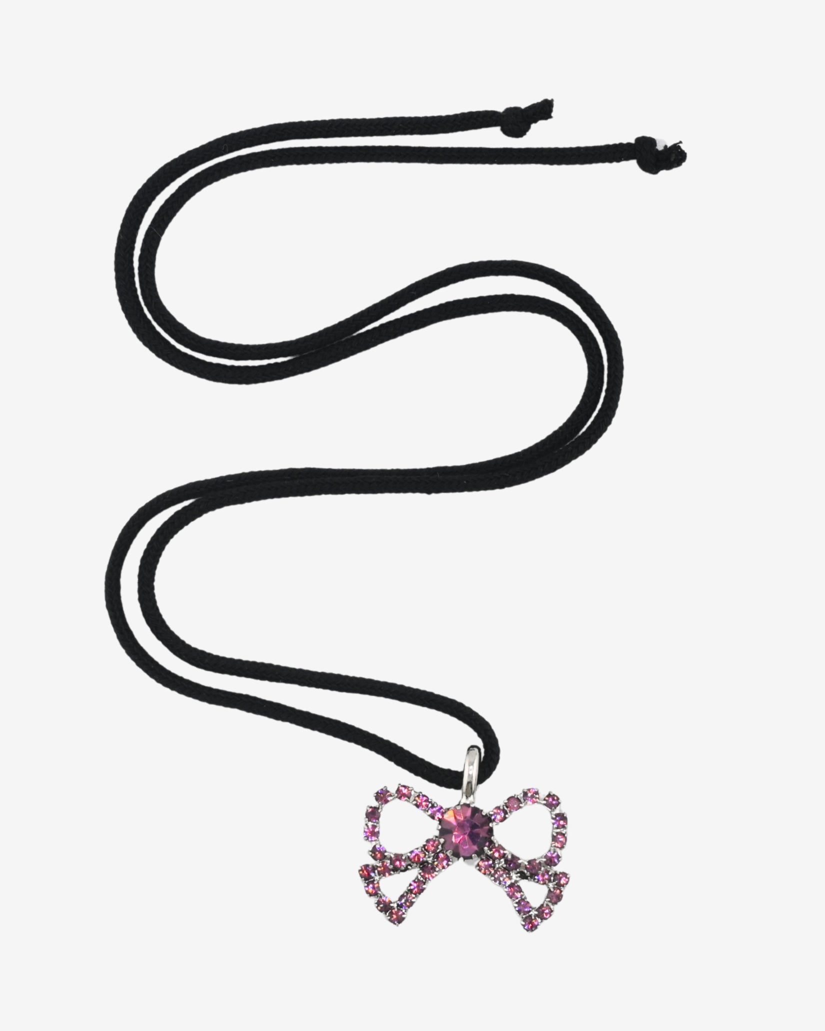 Petit Cadeau Swarovski crystal bow pendant on wrap cording.