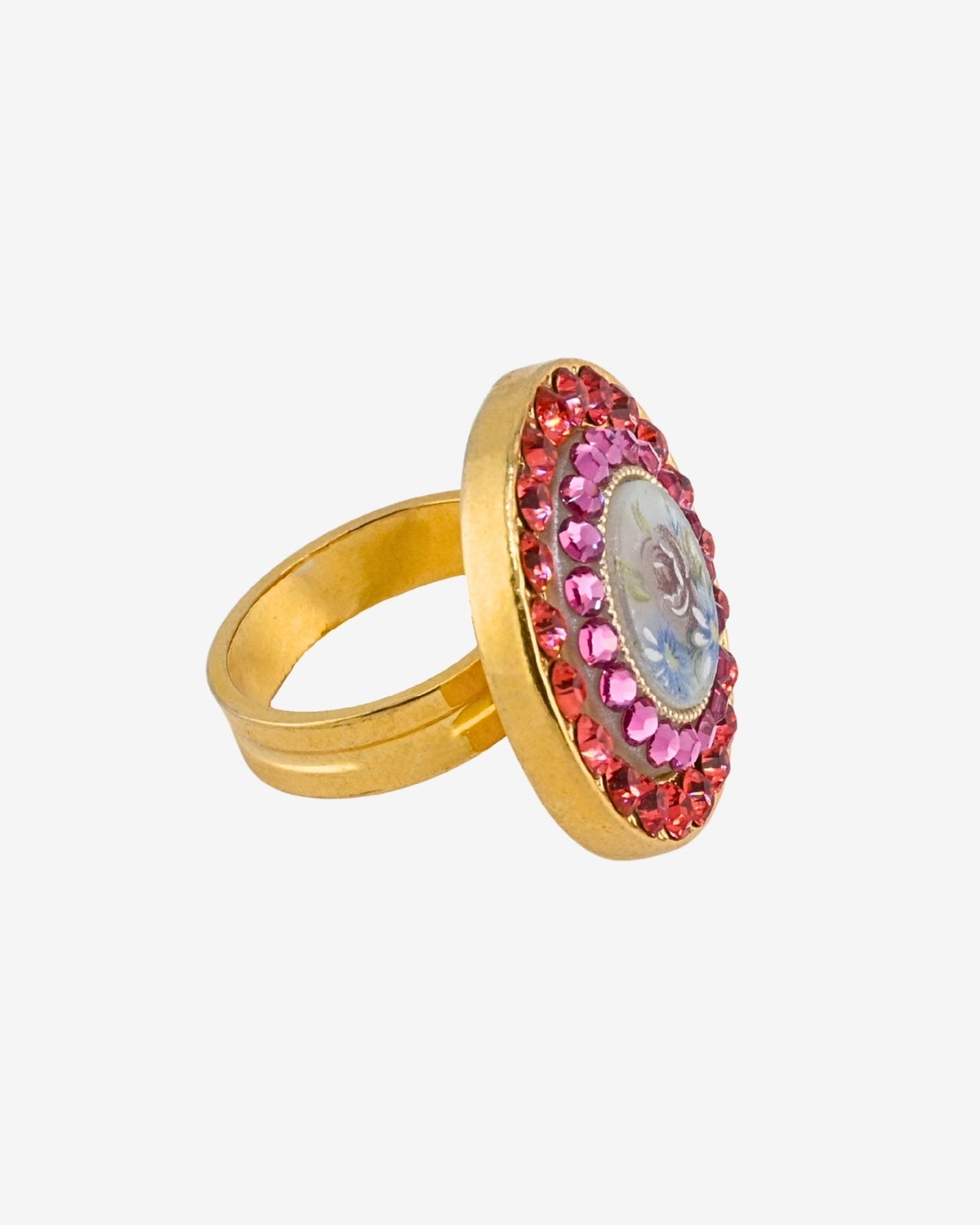 From our 2012 Garden Party Collection Archive. Featuring a vintage floral cameo framed in two rows of Swarovski Crystal.