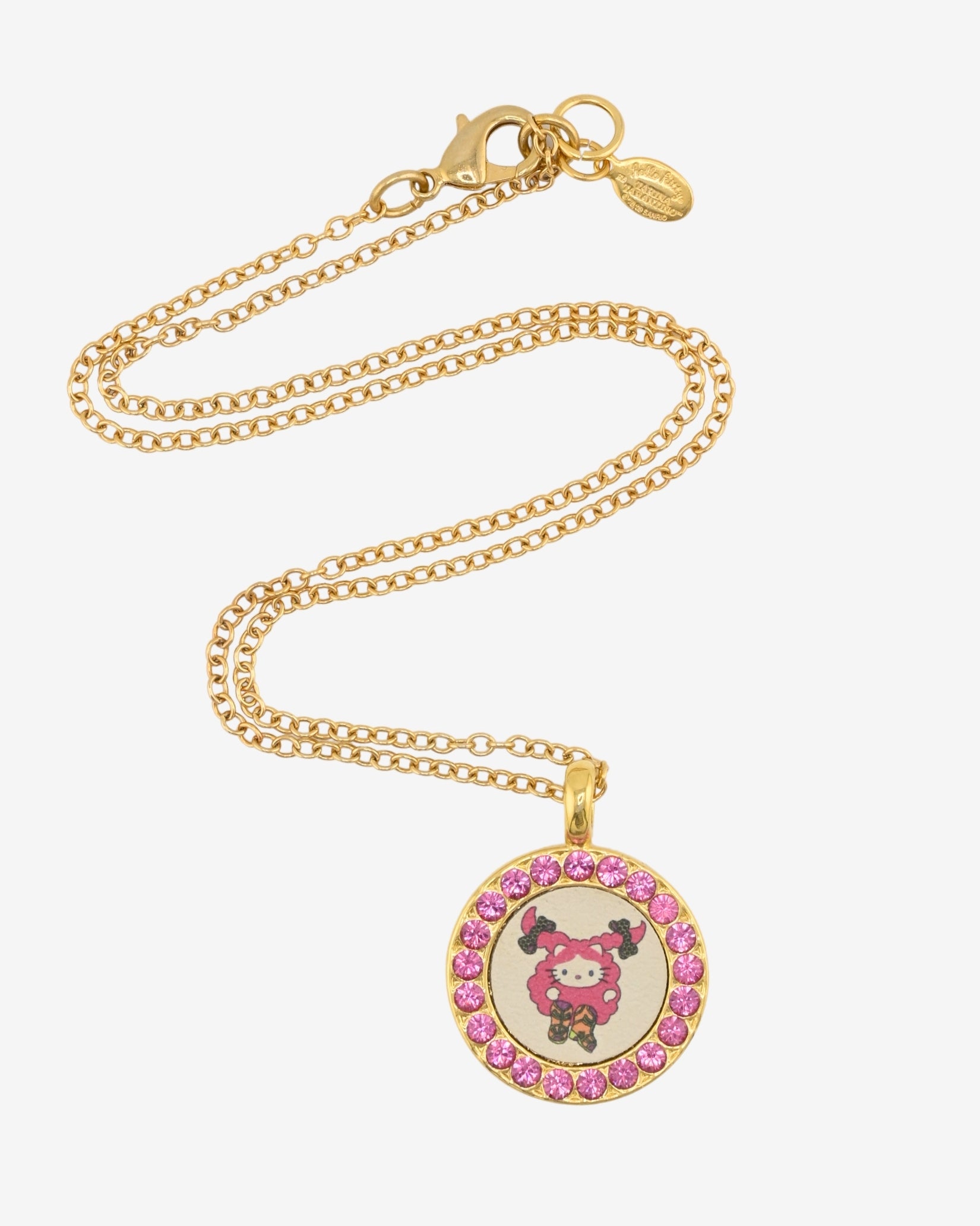 Originally part of the Hello Kitty Pink Head x Tarina Tarantino Peace, Love & Sparkle Collection circa 2009. Featuring a printed ultrasuede leatherette cameo framed in sparkling pink Swarovski Crystals. This is extremely limited in quantity and once its gone its gone forever.
