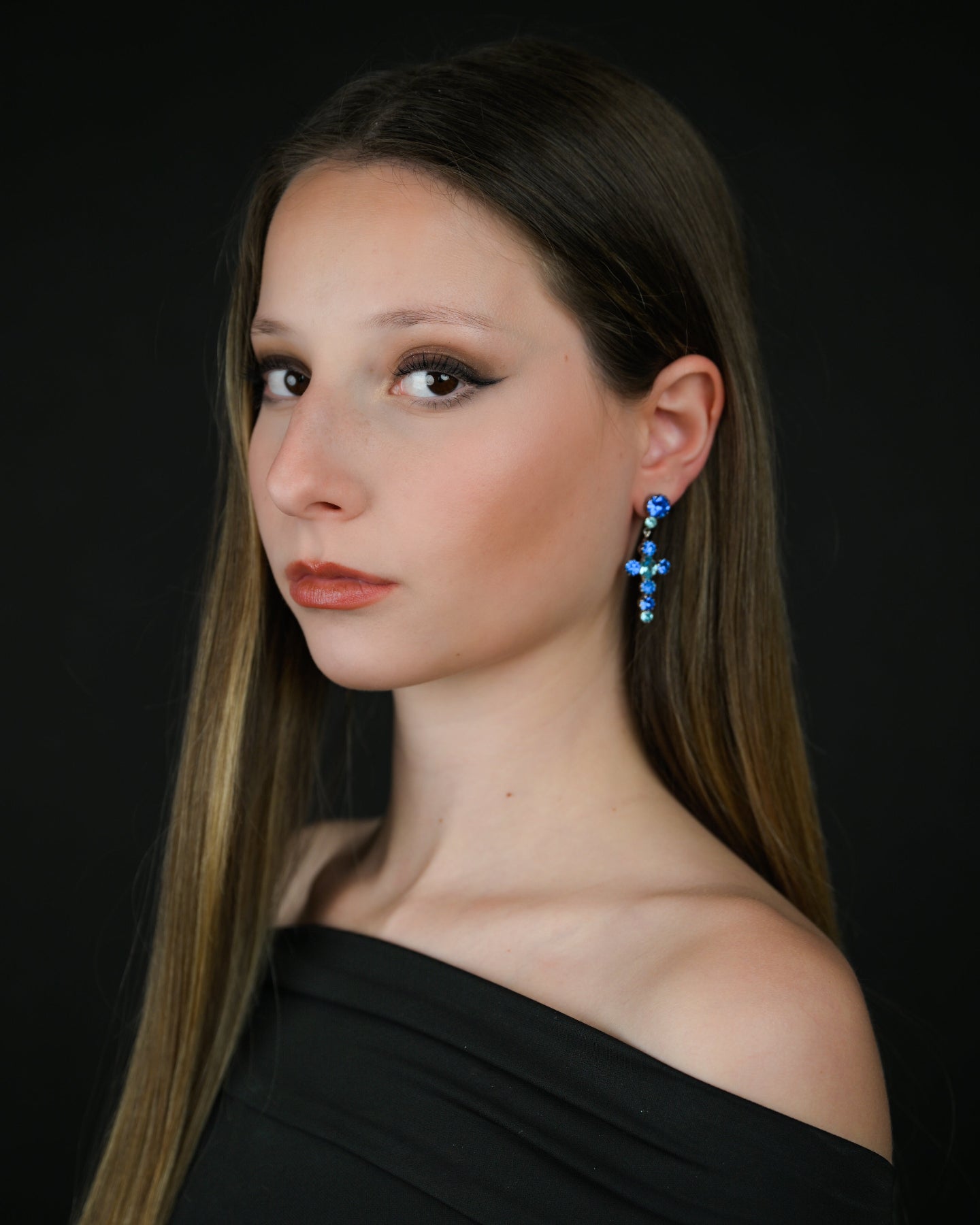 Our new favorite go-to earrings. The Tarina Tarantino classic cross design in Swarovski Crystal adds the perfect edgy and poetic touch to complete your look.