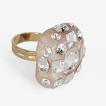 Hand sculpted by Tarina these cocktail rings are wearable pieces of art. The process in making this ring begins with mixing of colors and polymer clay to achieve the perfect shade - this alone can take days as Tarina likes to create her own color range for these pieces, the piece is then hand sculpted and formed around an internal metal skeletal shank for durability, finally the stones are set by hand and re-set after baking with epoxy. Each ring represents hours and hours of design and craftsmanship and no two are exactly alike.