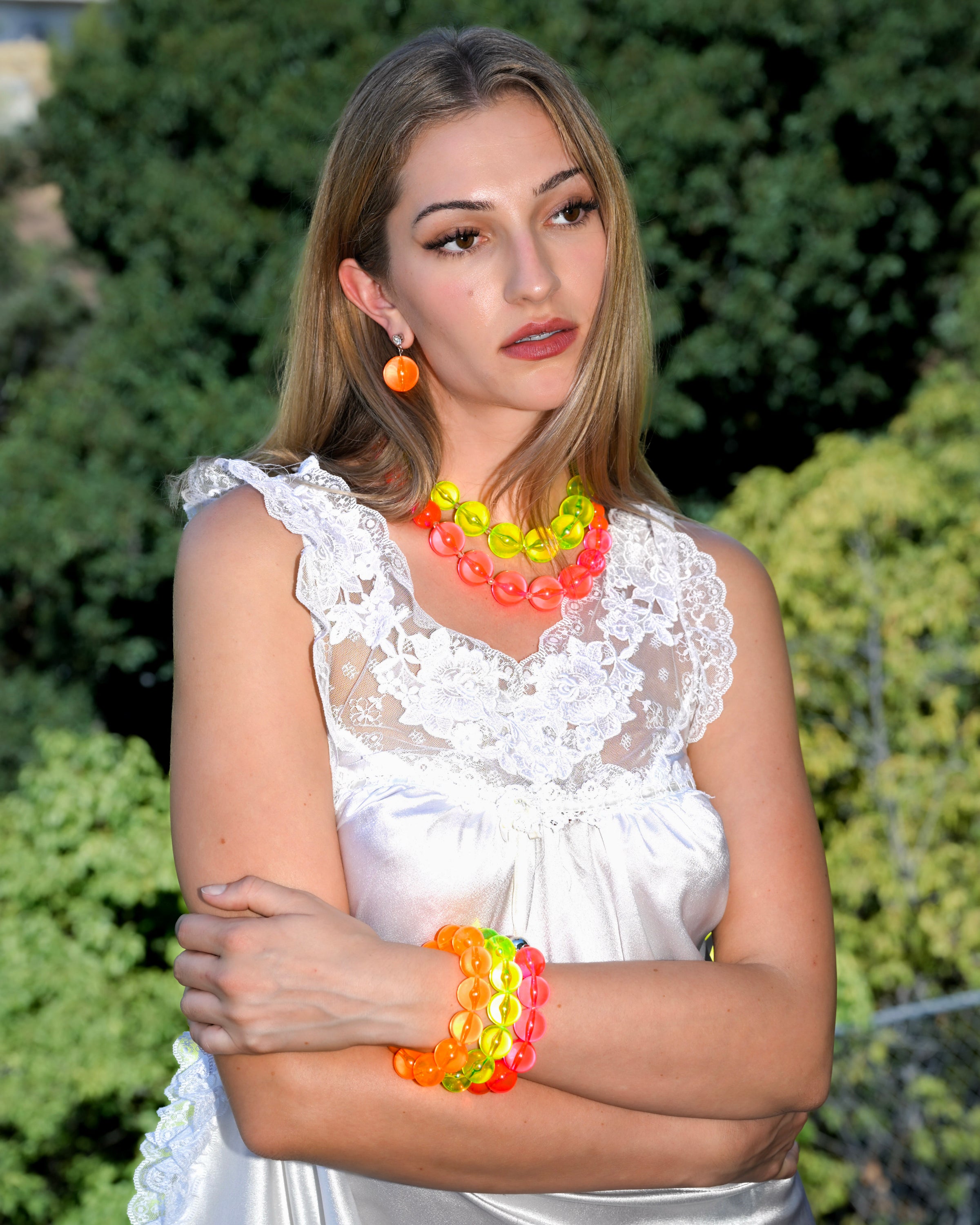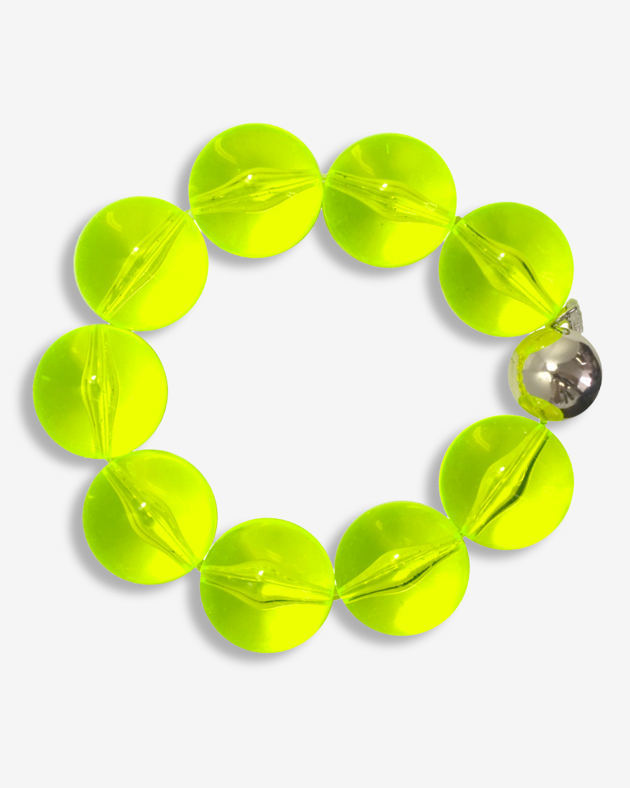 The Tokyo Hardcore Collection "Neon Nights Bracelet" features our exclusive neon-infused lucite beads that radiate a luminous shine. Each bracelet is finished with a single polished silver accent bead for contrast. Wear solo for a pop of bold color, or stack them for the ultimate eye-catching statement.
