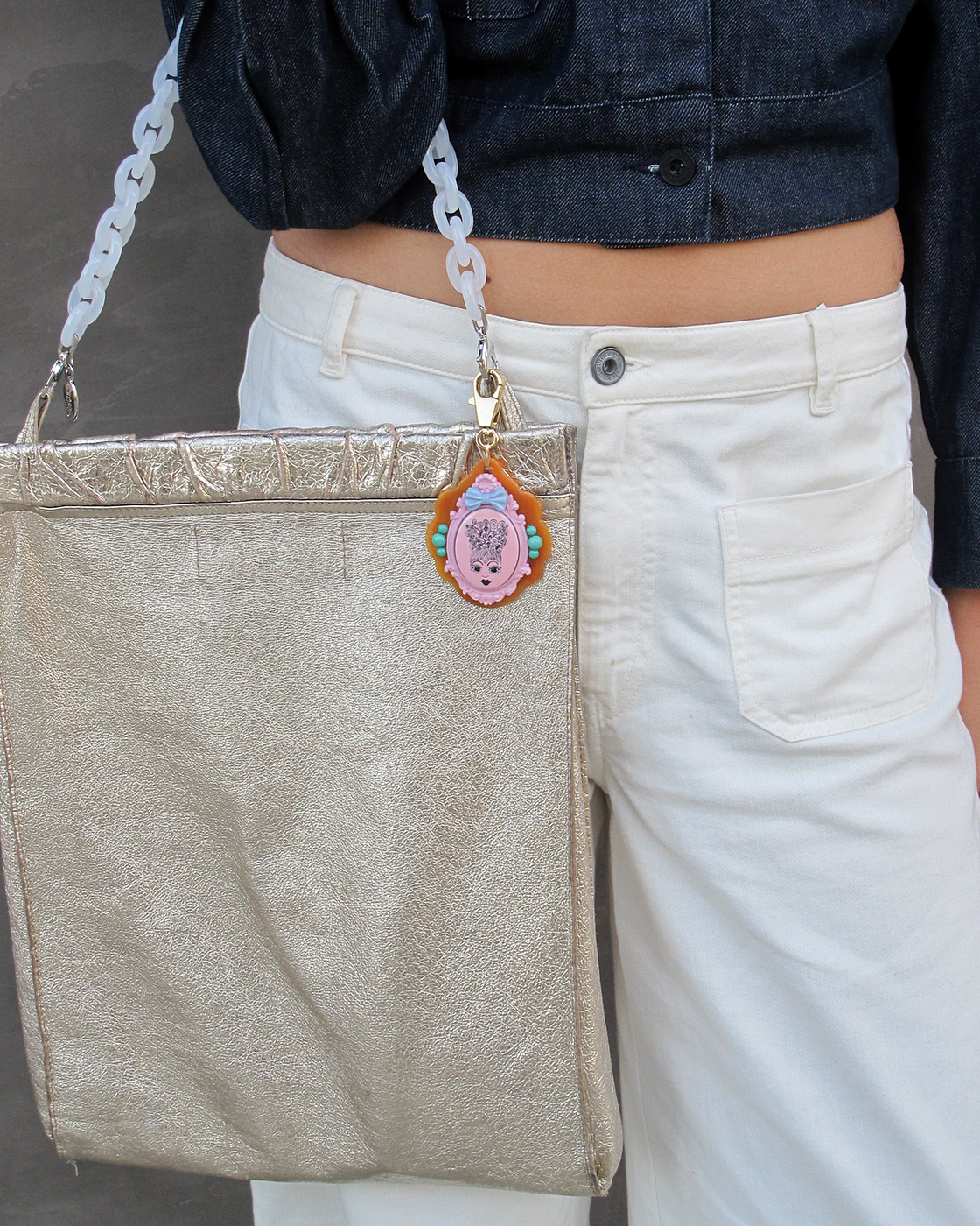 This is jewelry for your bag or beltloop or anywhere you can dream up. We originally created these charms in the early 2000's calling them "Bag Candy" and they became a TT cult favorite selling out in our boutiques from Melrose to Milano. Featuring a beautiful and sturdy clasp for durability.