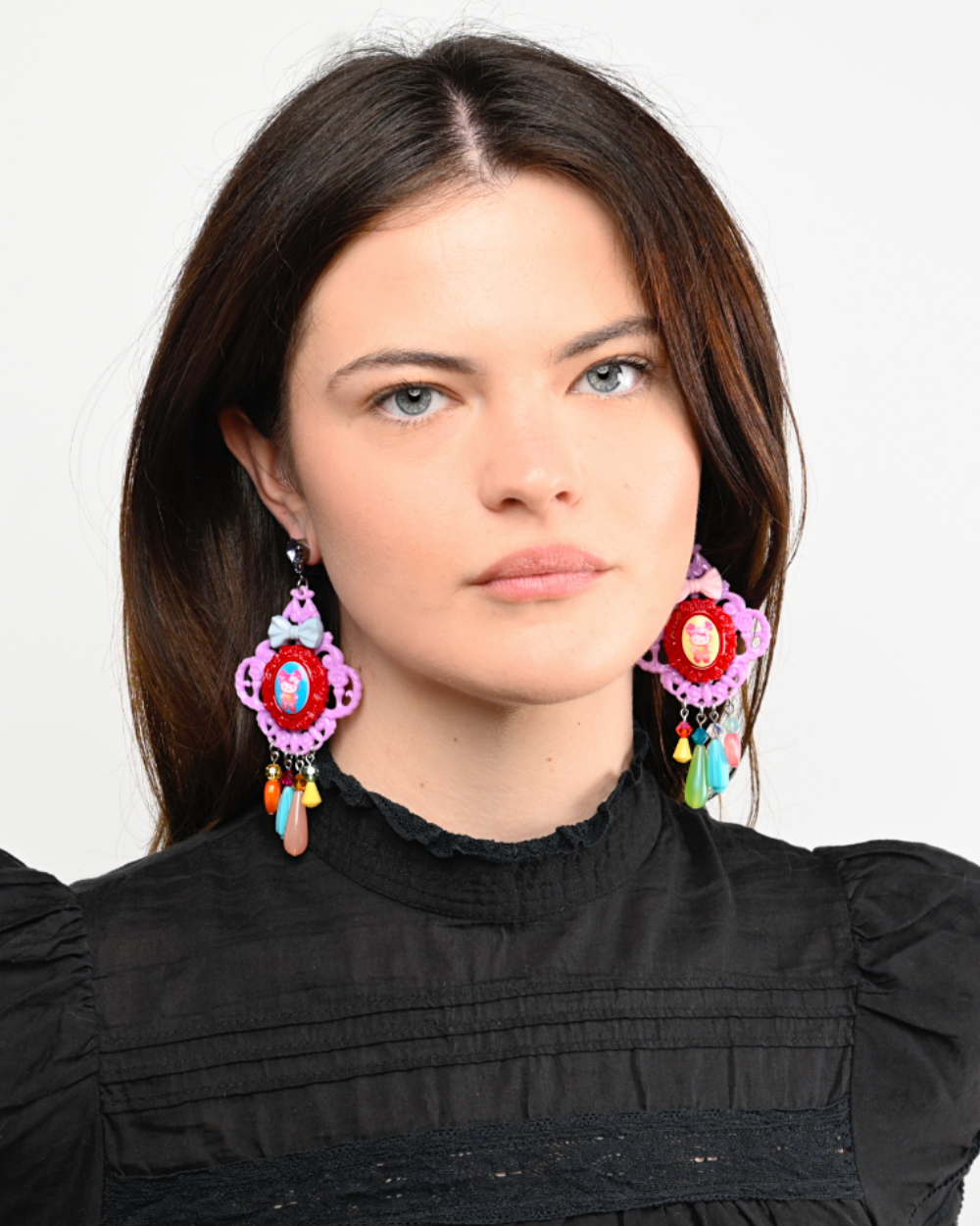 Hello Kitty Pink Head x Tarina Harajuku Mismatch Earrings features archival charms and kitty cameos from our treasure trove.  Very limited edition and collectible.