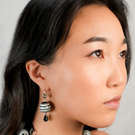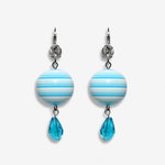 Le Bande Drop Earrings feature candy stripe lucite beads on a Swarovski Crystal post.