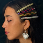 This is not just a hair clip, this is hair jewelry. The super strong slide-lock clip, made in France, can control even the thickest hair. Tally Long features a gorgeous row of sparkling Swarovski Crystal on a cast nylon resin base.