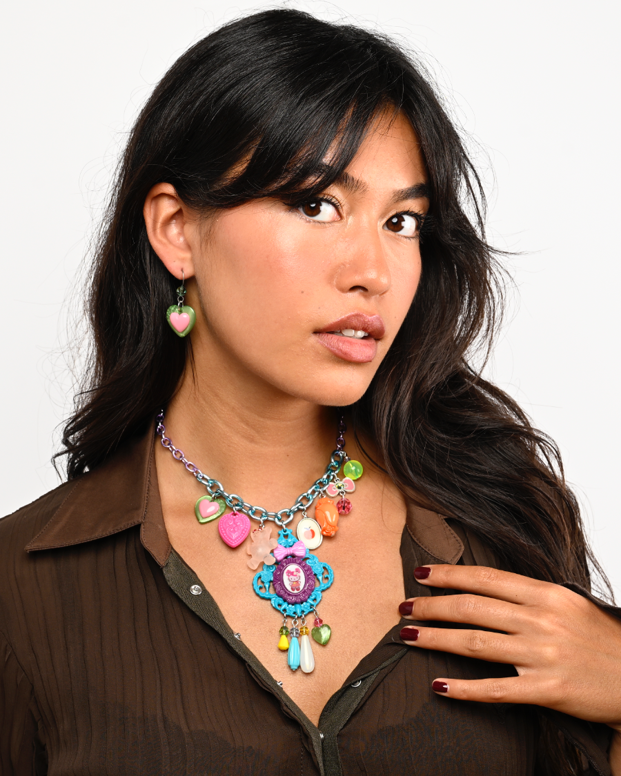 Hello Kitty Pink Head x Tarina Harajuku Necklace features archival charms and kitty cameo from our treasure trove.