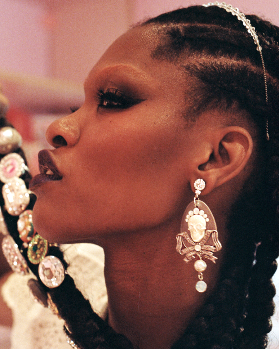 All collections are designed and handmade at Hollywood Wonderland in Los Angeles. This allows us to oversee every detail from sketch to final piece. Most of our collections feature custom-made or vintage materials chosen from our vast Sparkle Factory archives.