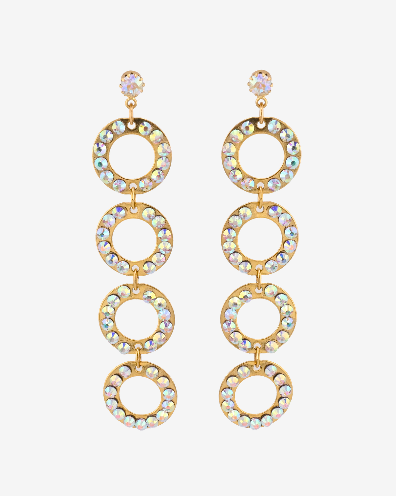 Dance and sparkle the night away in these whisper light crystal circle shoulder dusting dangle earrings.
