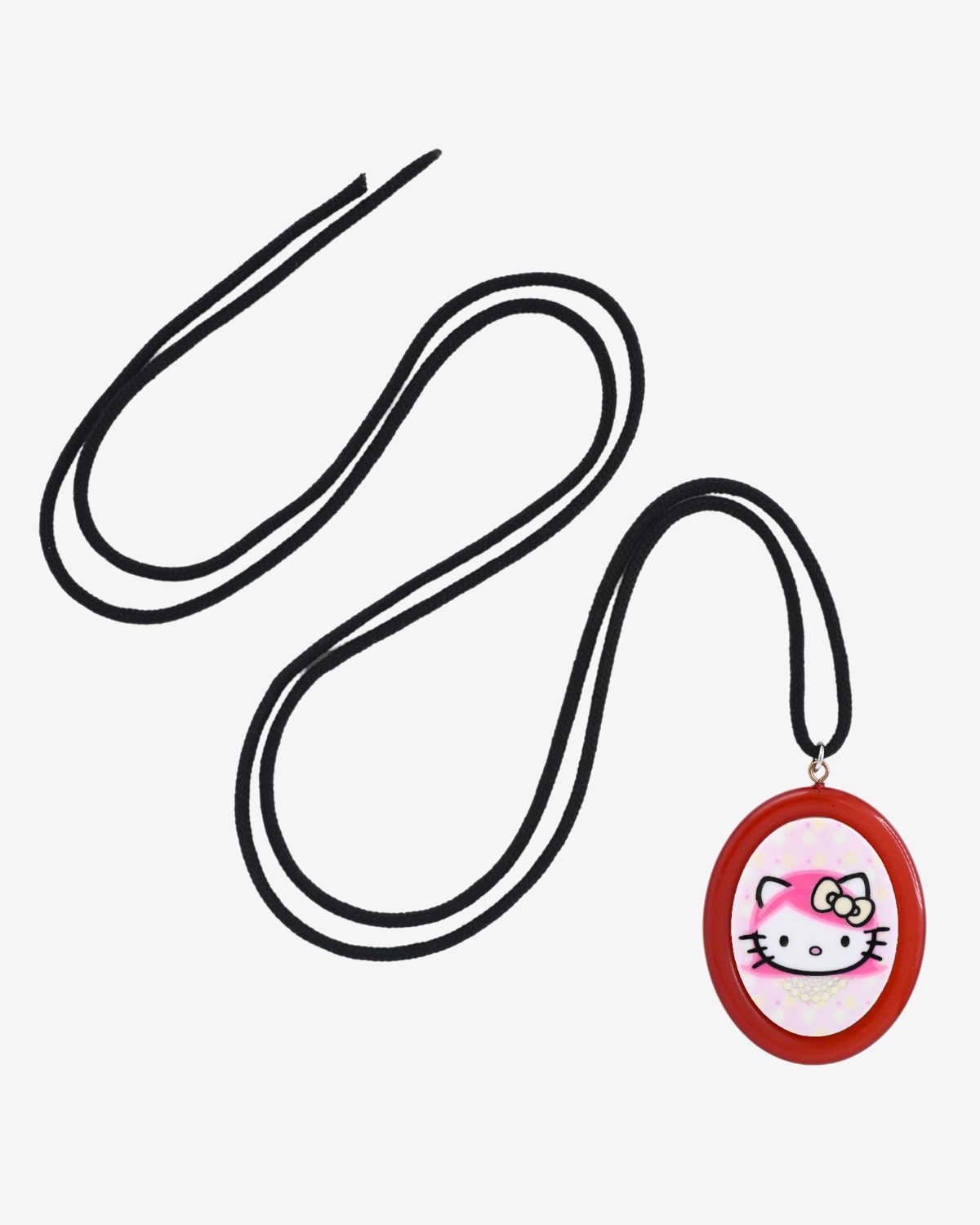 Our classic wrap necklace featuring Hello Kitty Pink Head x TARINA TARANTINO collection cameos. For this piece the cameo is seated in our classic semi-translucent "Cloud" pendant which allows light to travel through framing these cameos with a sweet glow. It is finally laced onto a woven Japanese cotton cording that is soft and strong.