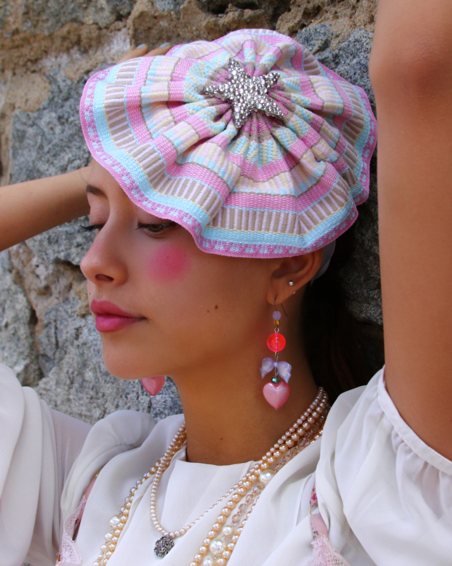 All collections are designed and handmade at Hollywood Wonderland in Los Angeles. This allows us to oversee every detail from sketch to final piece. Most of our collections feature custom-made or vintage materials chosen from our vast Sparkle Factory archives.