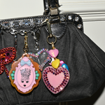 Bag charm featuring lucite hearts, Swarovski Crystal and a signature Tarina Carnaby Street charm.