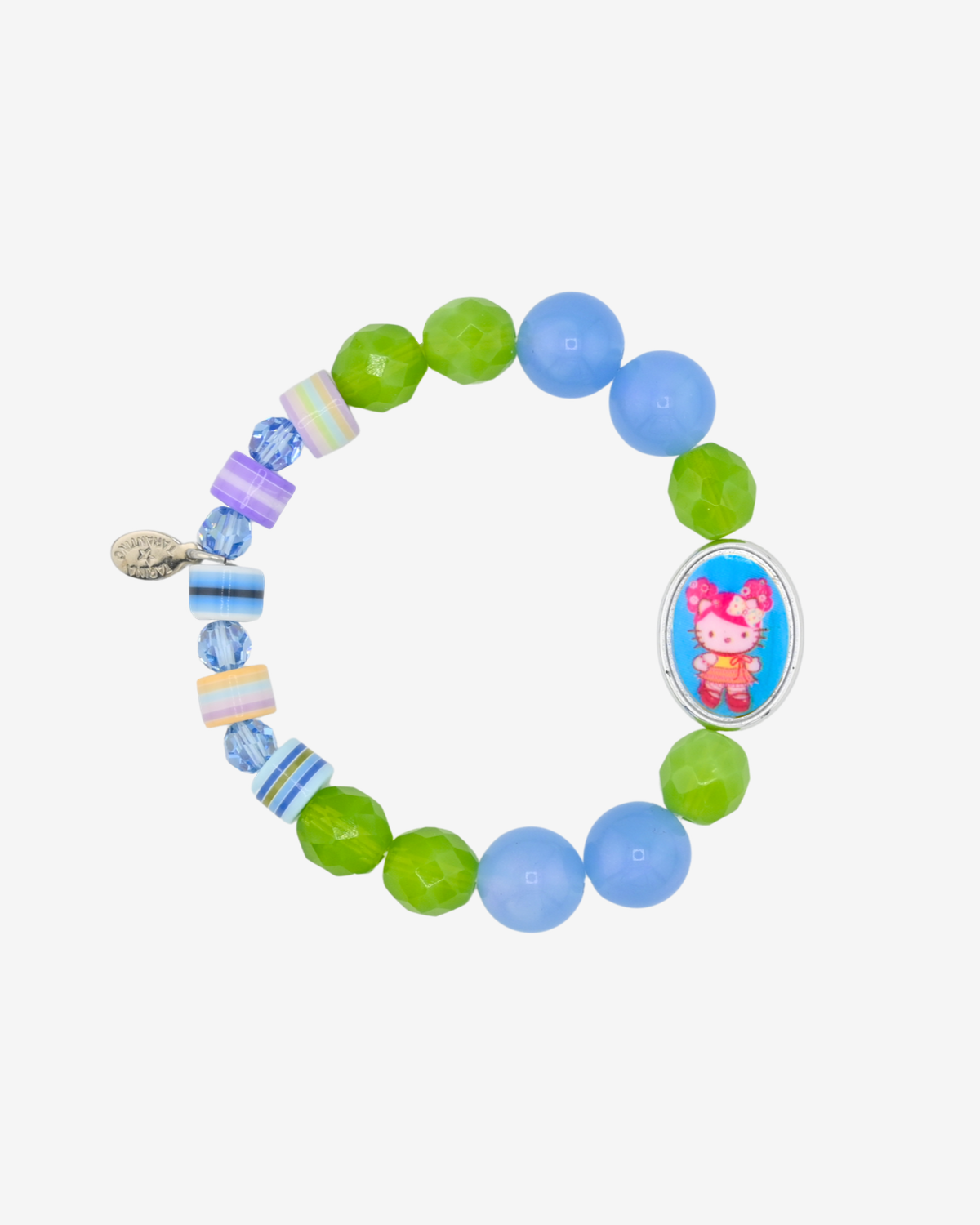 Lucite and Crystal Stretch Bracelet featuring candy inspired beads and flip cameo slider.