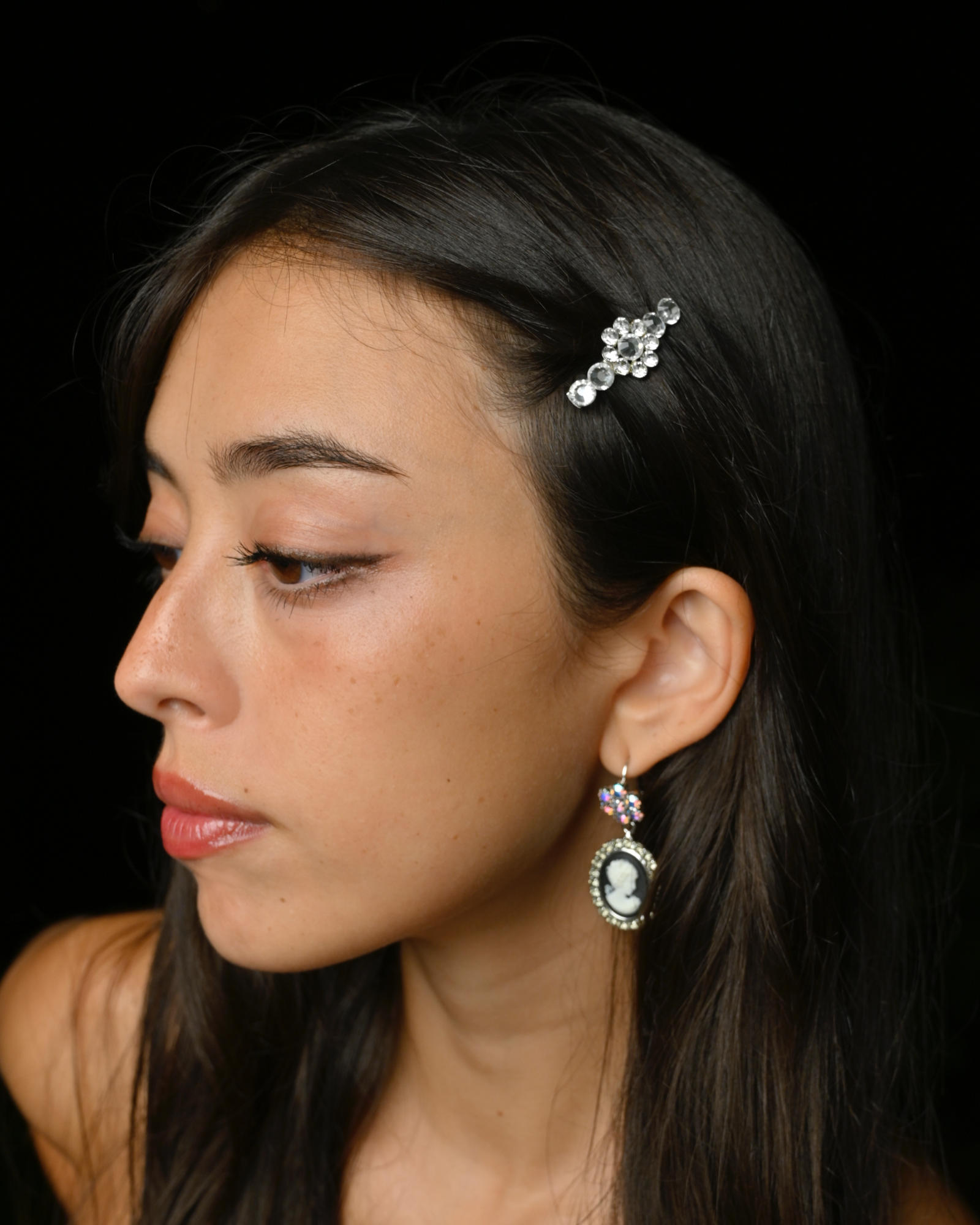 Back from the 90's our classic single flower crystal clip features Swarovski Crystal set on a french Magali style clip. This clip may be small but its big on sparkling effects. Try just one for a chic sweep back or layer for a more editorial look.