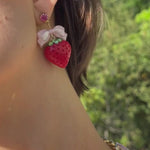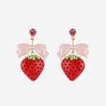 Sweet summertime in the Berry Cafe. These earrings capture the mood of our favorite dessert cafes in Harajuku, Tokyo. Featuring Swarovski Crystal and our exclusive lucite strawberry pendants.