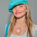 Swarovski pearl and Crystal bead necklace with a sparkling vintage style collage pendant, featuring Hello Kitty x Tarina "Pink Head" collection cameo.