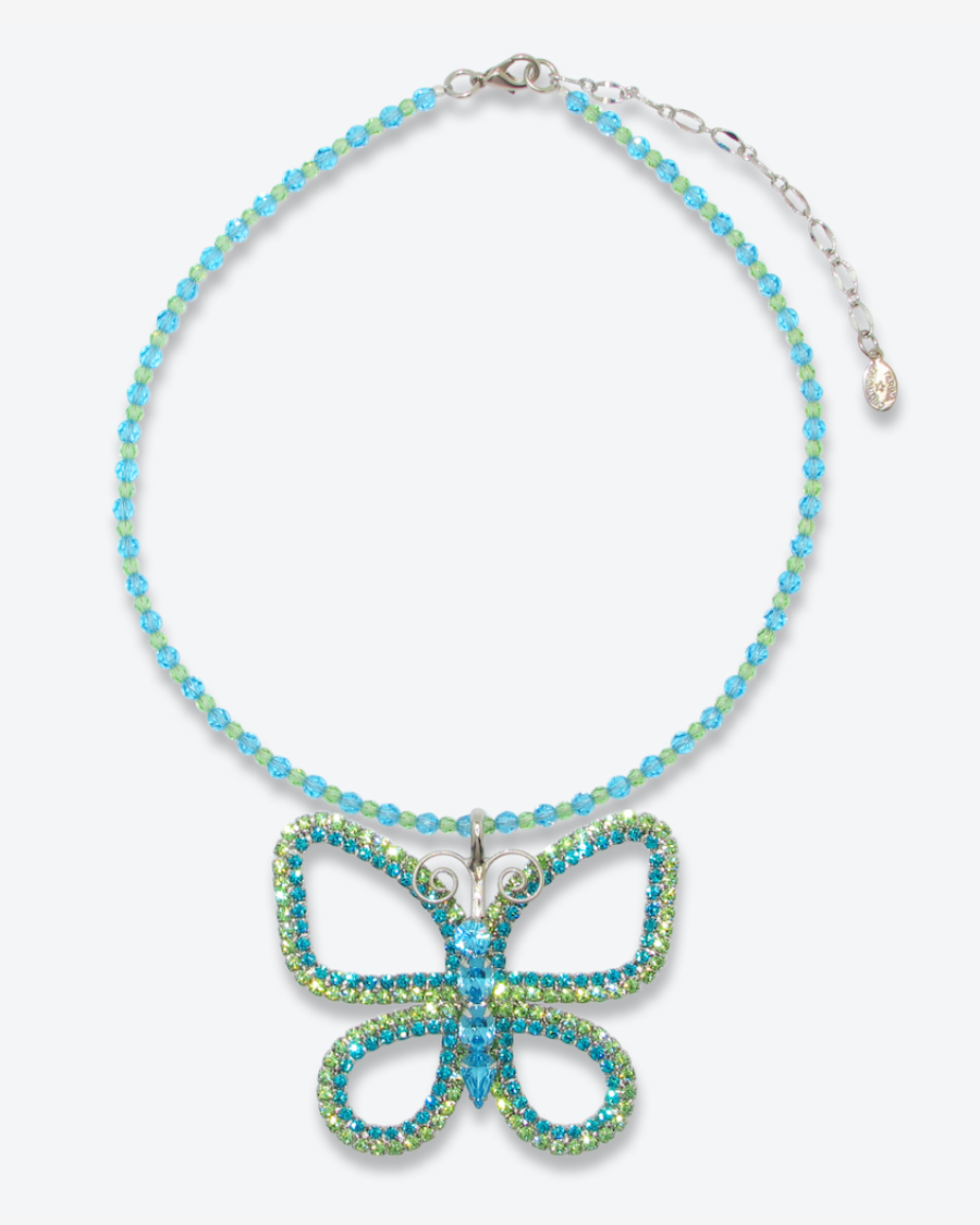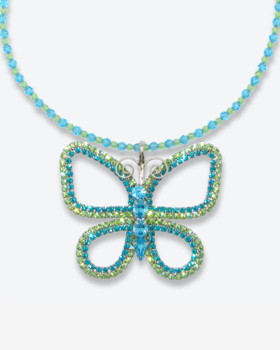 The original "13 Going on 30" Butterfly necklace, as worn by Jennifer Garner in the 2004 movie. This oversized butterfly pendant and necklace is handcrafted with Swarovski Crystal.