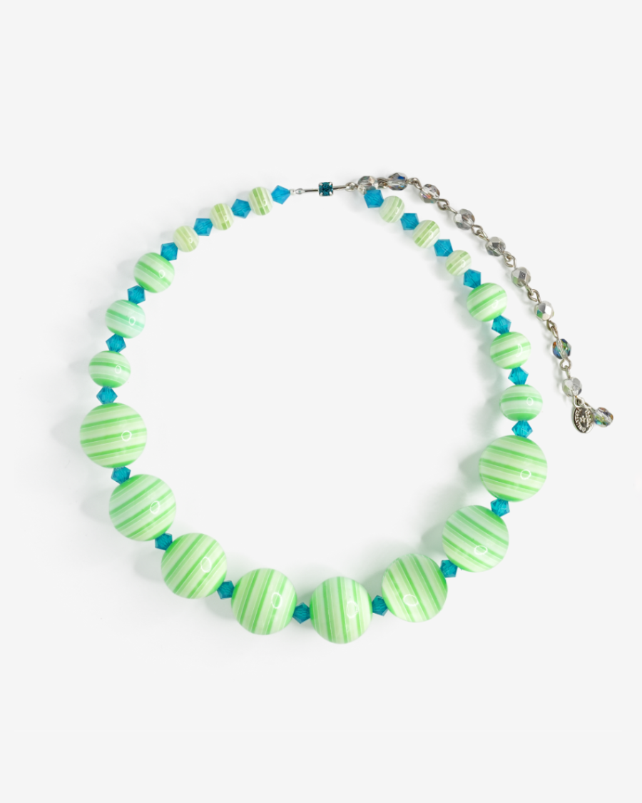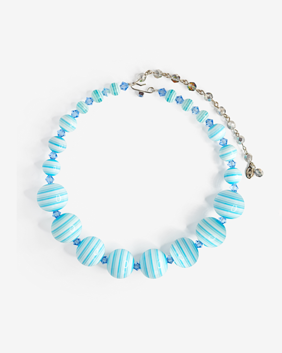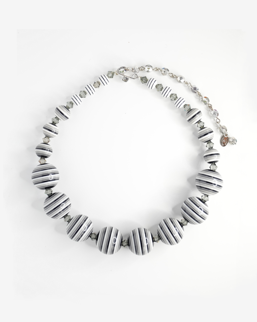 Stripe Choker features lucite, swarovski crystal and silver tone metal components.
