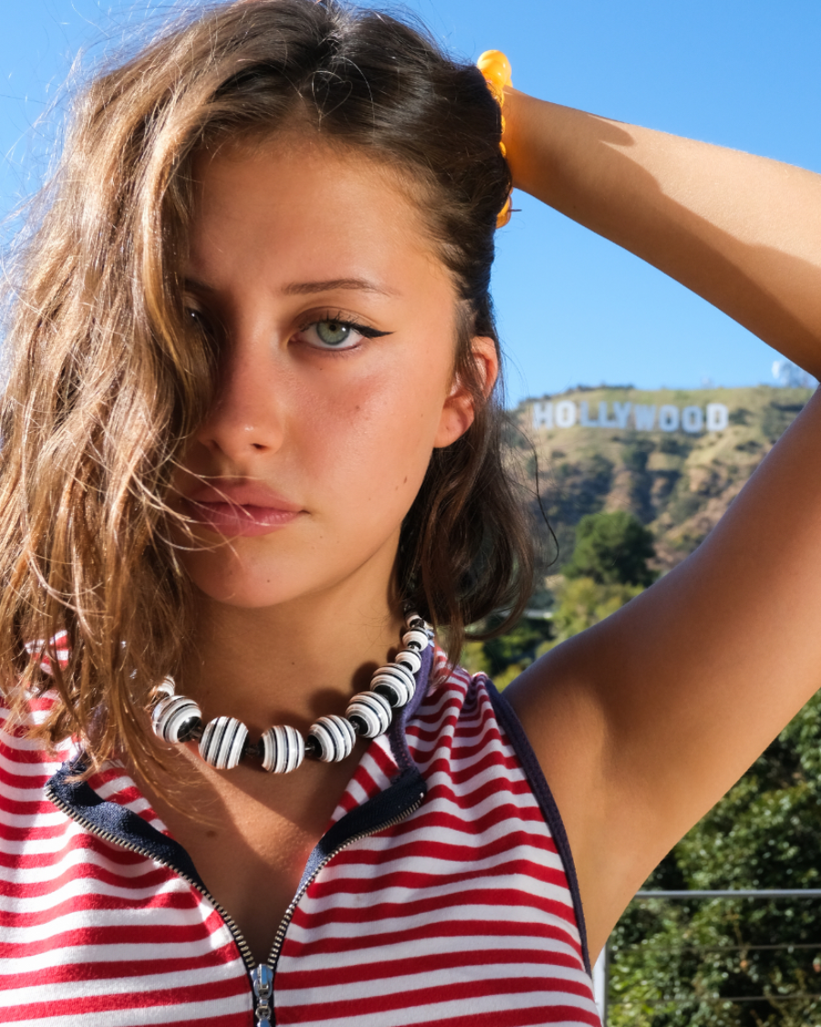 All collections are designed and handmade at Hollywood Wonderland in Los Angeles. This allows us to oversee every detail from sketch to final piece. Most of our collections feature custom-made or vintage materials chosen from our vast Sparkle Factory archives.