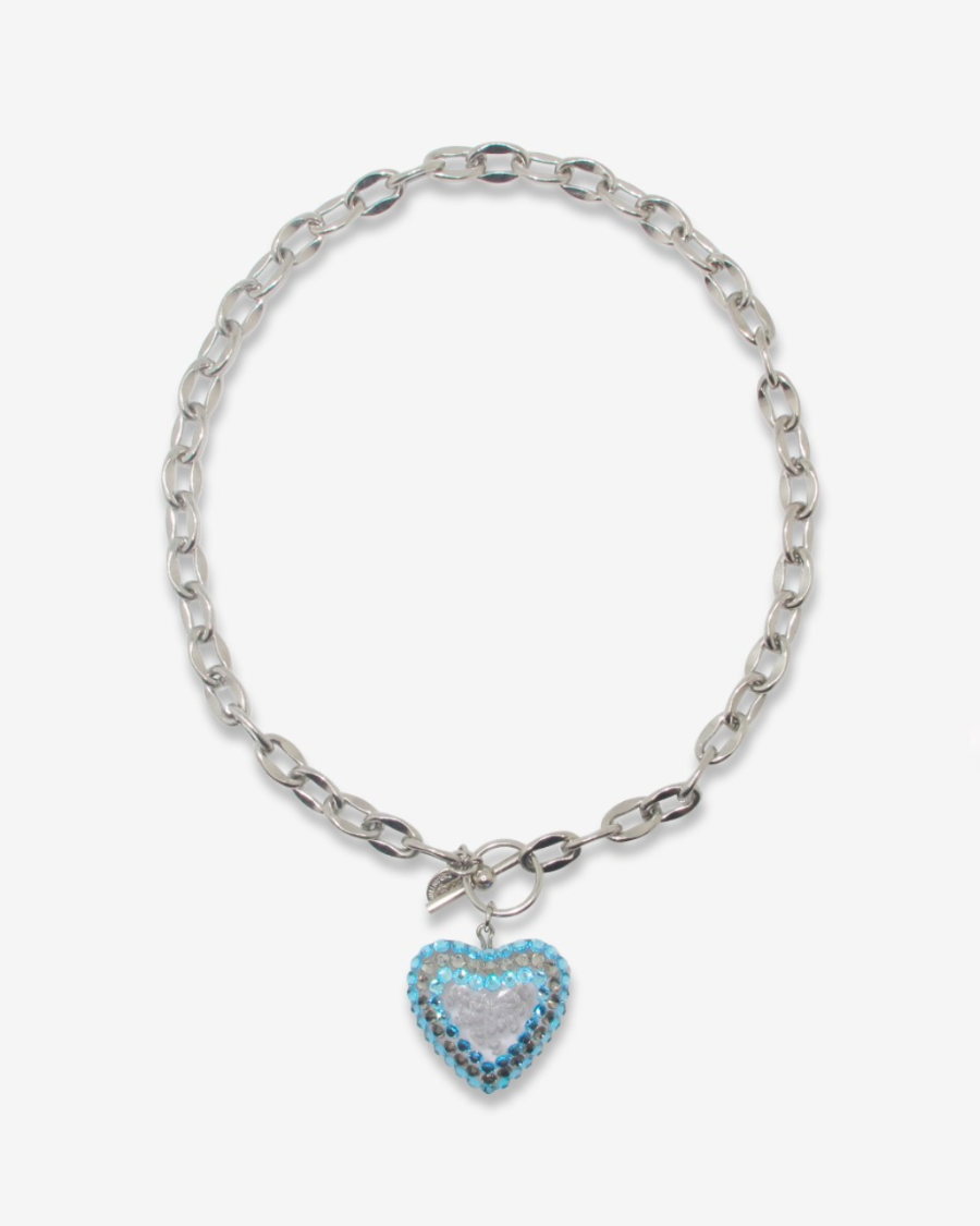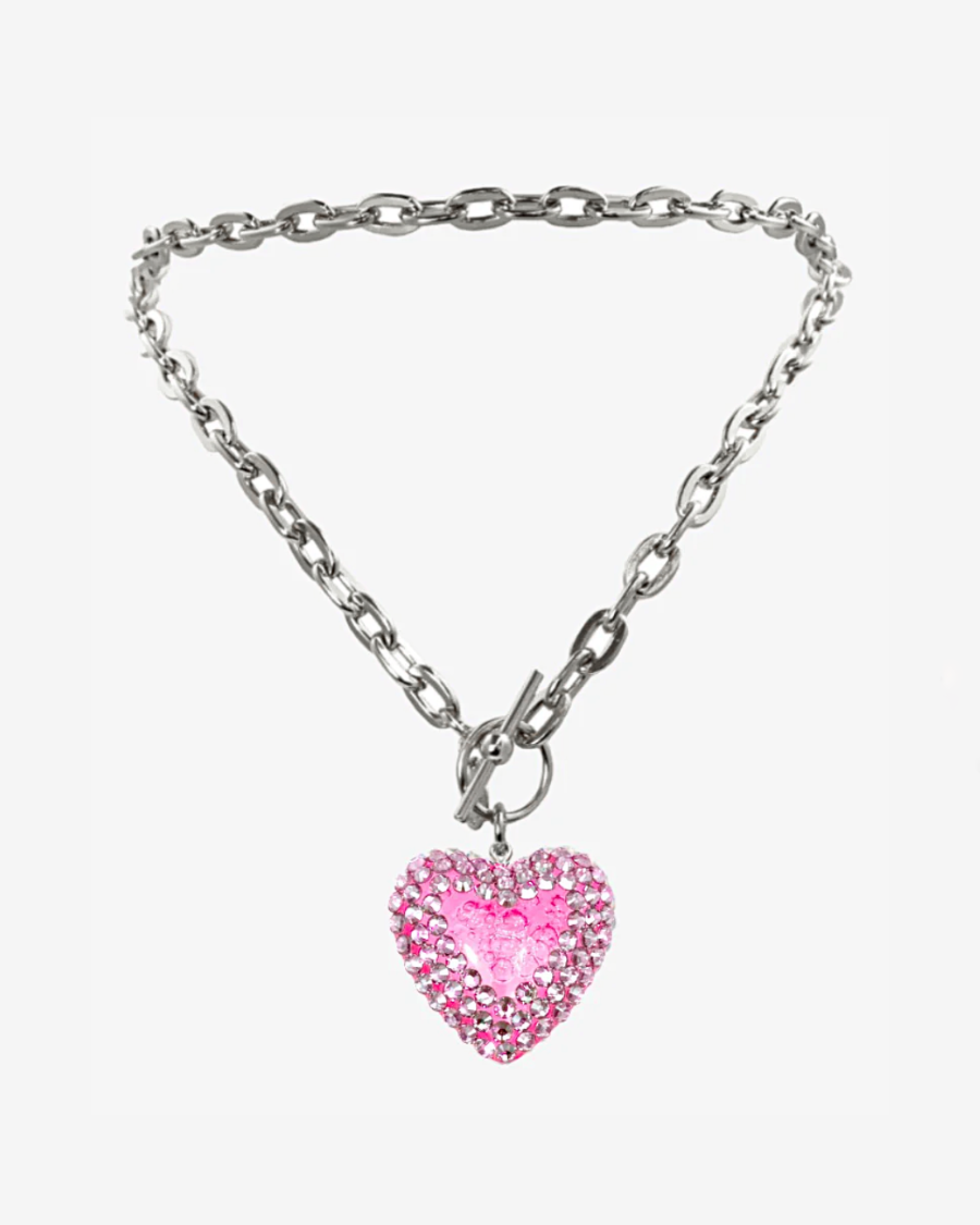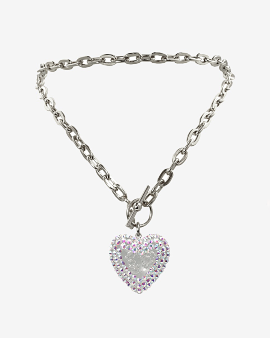 Materials: Lucite, Swarovski Crystal, Silver tone chain.