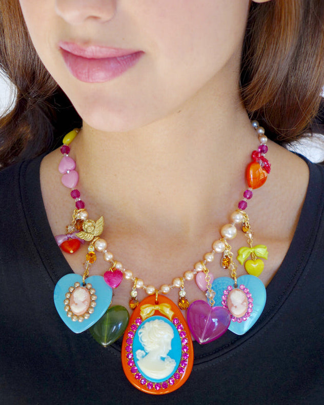 All collections are designed and handmade at Hollywood Wonderland in Los Angeles. This allows us to oversee every detail from sketch to final piece. Most of our collections feature custom-made or vintage materials chosen from our vast Sparkle Factory archives.