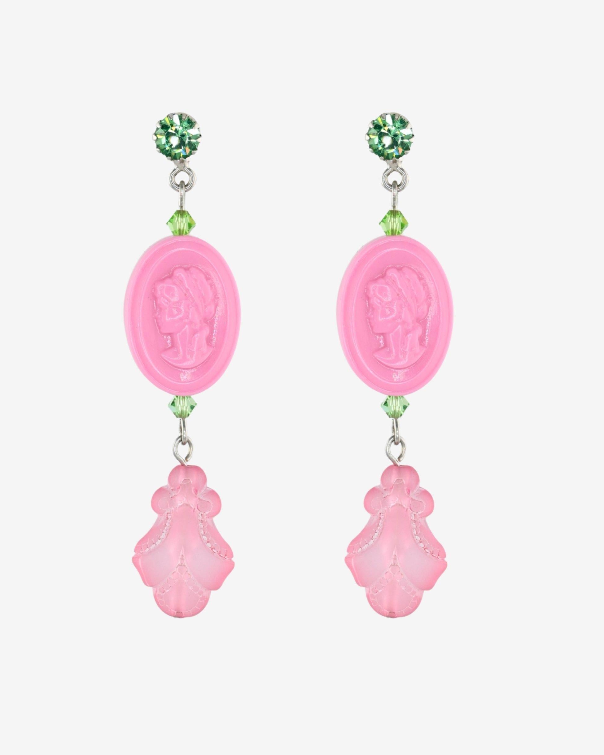 One of our most classic and iconic collections; Candy Cameo is inspired by Grandma's vintage jewelry in acid bright colors. Candy Shop Earrings feature mouth watering lucite in confectionary colors and our exclusive cameo pastille beads.