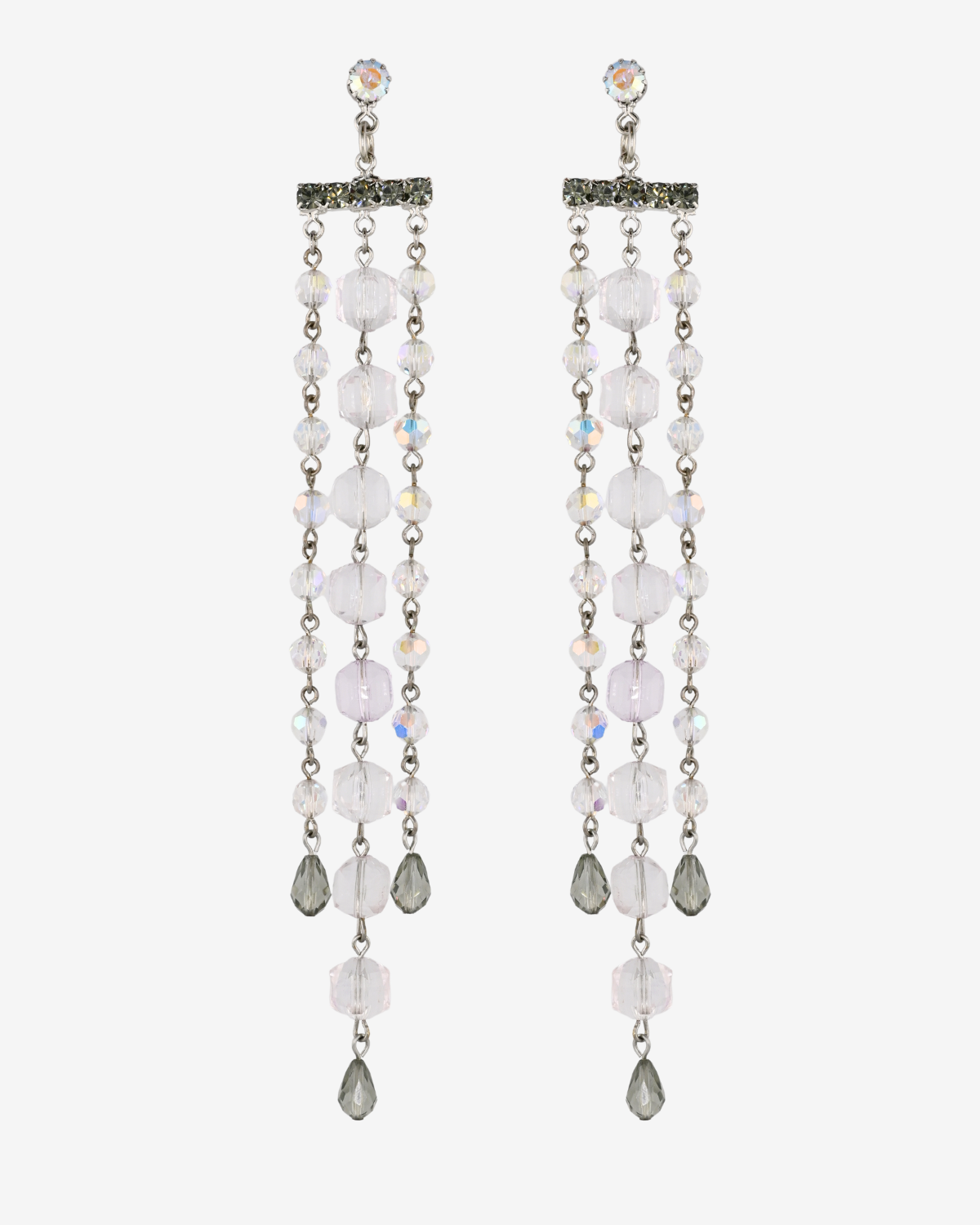 These sparkling SHOULDER DUSTER style earrings feature a cascade of sparkling Swarovski crystal and lucite. Big on sparkle but light in weight; making these a statement earring you can wear all night or day!