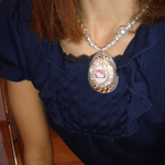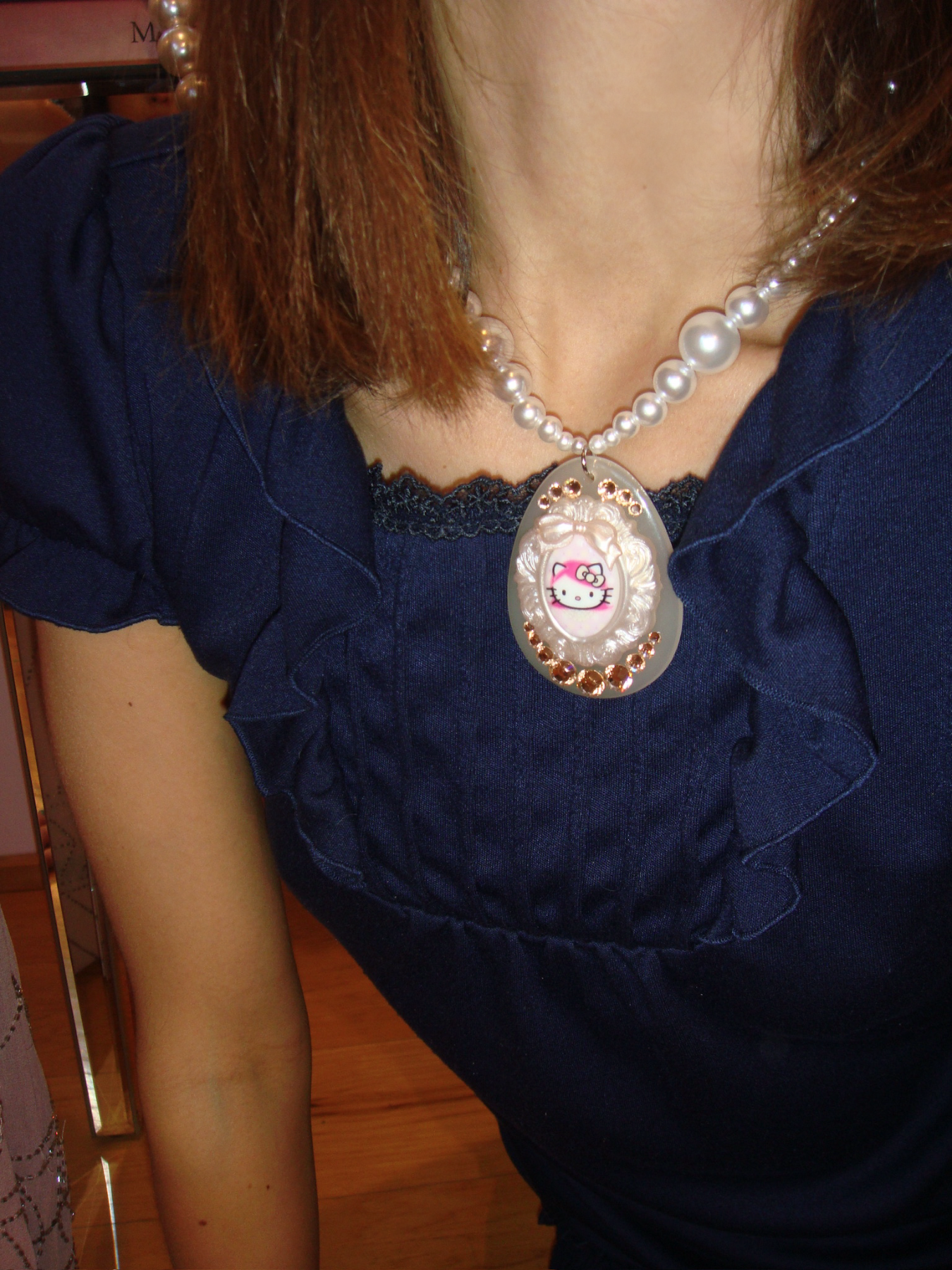 Hello Kitty Pink Head x Tarina Tarantino collection cameo's are framed in our exclusive candy colored baroque pendants and Swarovski crystal and laced onto graduated glass pearls.
