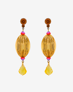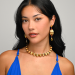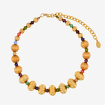 The Casimir Necklace features elegant puffy gold beads and a colorful selection of Swarovski Crystal.The adjustable design offers versatility and effortless glamour, perfect for luxurious evening parties or to dress up a daytime professional look.