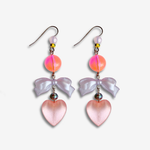 Made using neon-infused pink lucite and accented with Swarovski crystals, these earrings catch the light with every movement. Pastel bows and soft pink heart drops add a perfectly playful yet chic silhouette to any look.