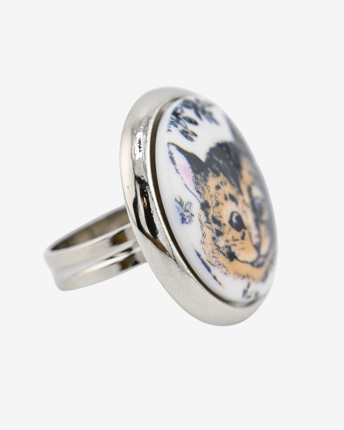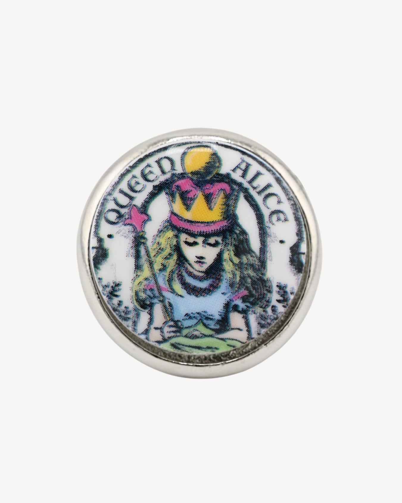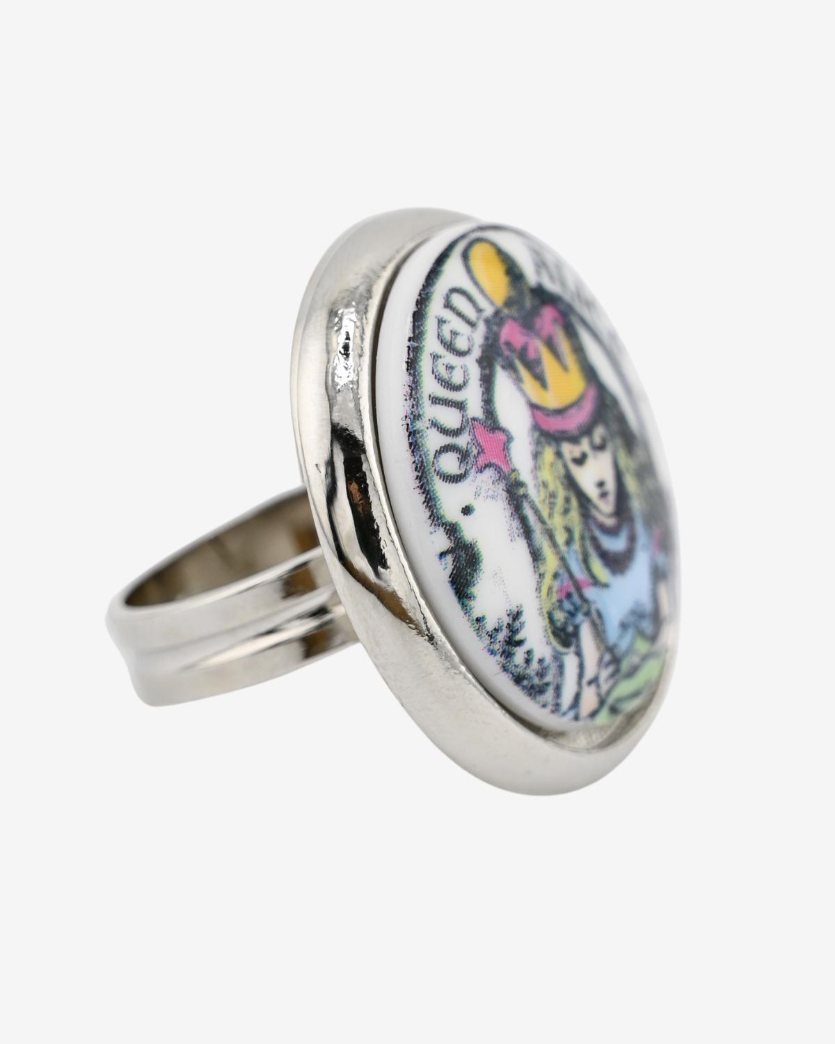 Featuring our exclusive original Alice In Wonderland artwork based on the original Tenniel drawings. Re-drawn and colorized they have been carefully printed on custom lucite cameos; a process that can no longer be done. The domed surface gives these cameos their special charm and once these cameos are gone they are gone forever. This ring is a heavier hand cast metal setting with embossed logo, limited edition and will not be restocked.