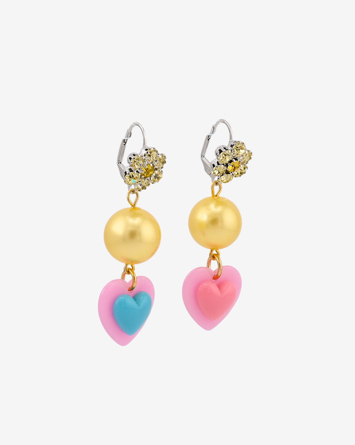 Featuring a charming Swarovski Crystal flower setting on vintage style lever back ear post, these earrings are unique and chic. The playfully mis-matched hearts are signature to our Barbie collections.
