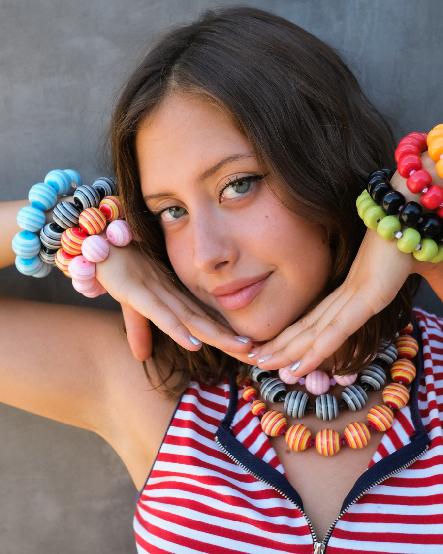 Chunky Lucite candy stripe stretch bracelet featuring vintage limited-edition beads.