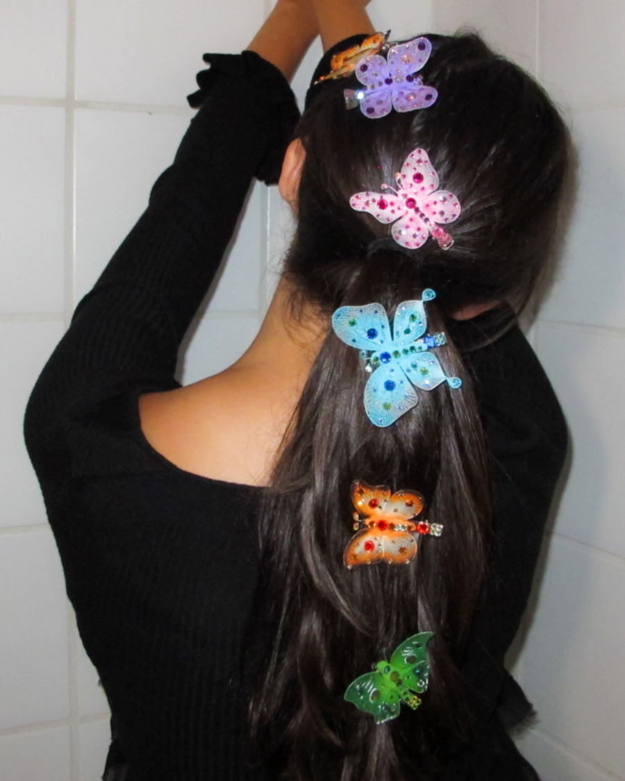 This Swarovski crystal embellished, hand-painted nylon purple butterfly clip perfectly captures Tarina's signature blend of whimsical elegance.