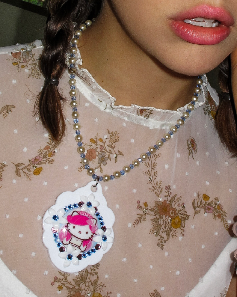 Necklace featuring exclusive Kitty Bride cameo from the Hello Kitty x Tarina Tarantino "Pink Head" collection.