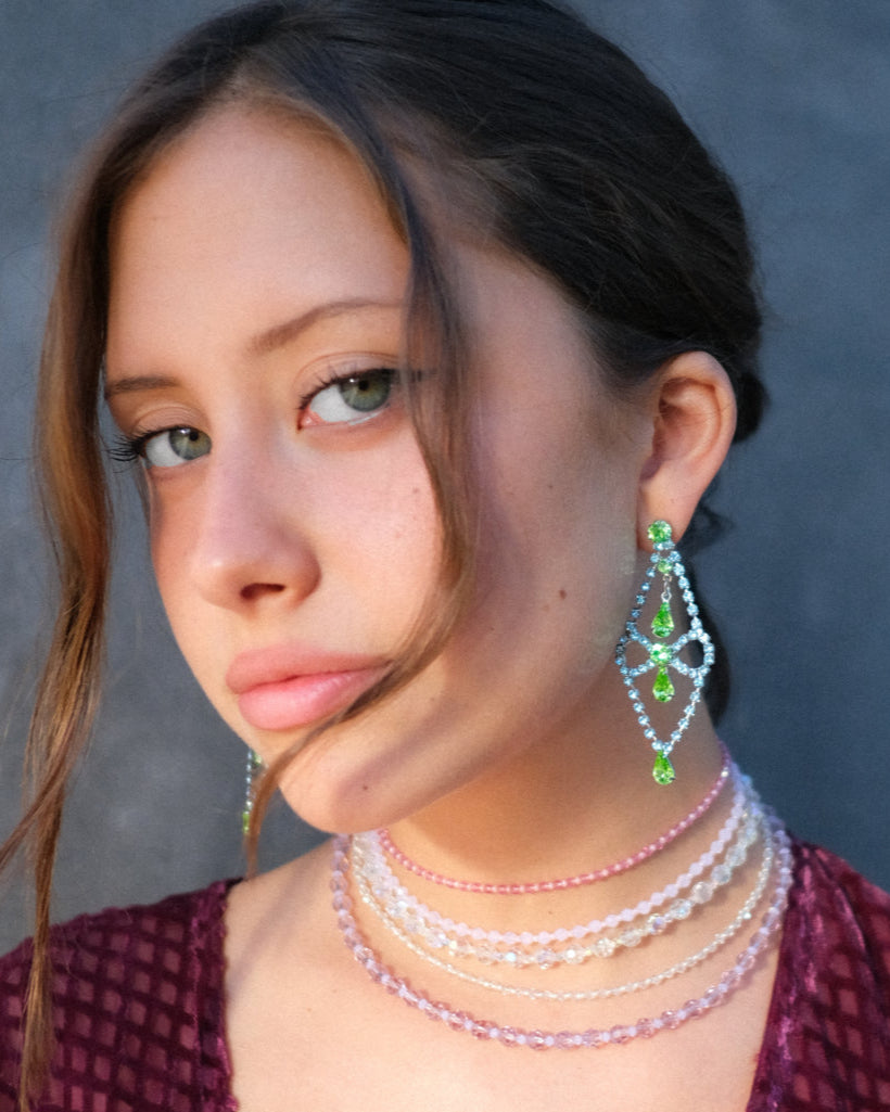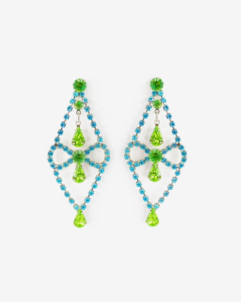 Light in weight (these are so so comfortable) but heavy on sparkle. In our signature Aqua and Peridot Swarovski Crystal color combination, Peri Bow is a classic statement for any look.