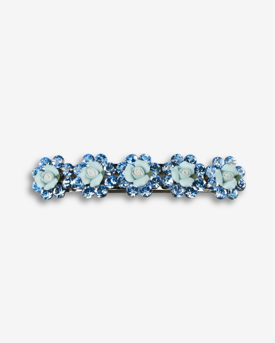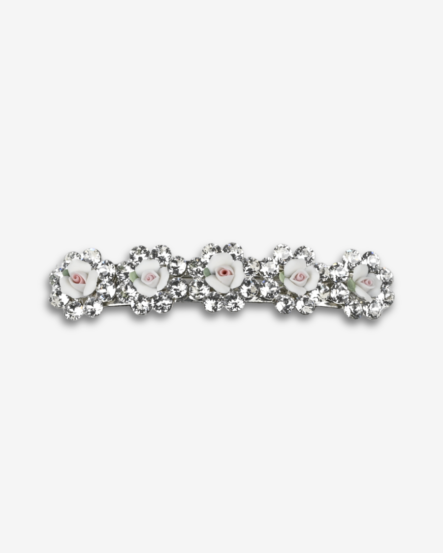 The Rose Big Barrette's french-made clip is strong enough to hold thick hair, while the Swarovski Crystal flowers add so much sparkle to your look.