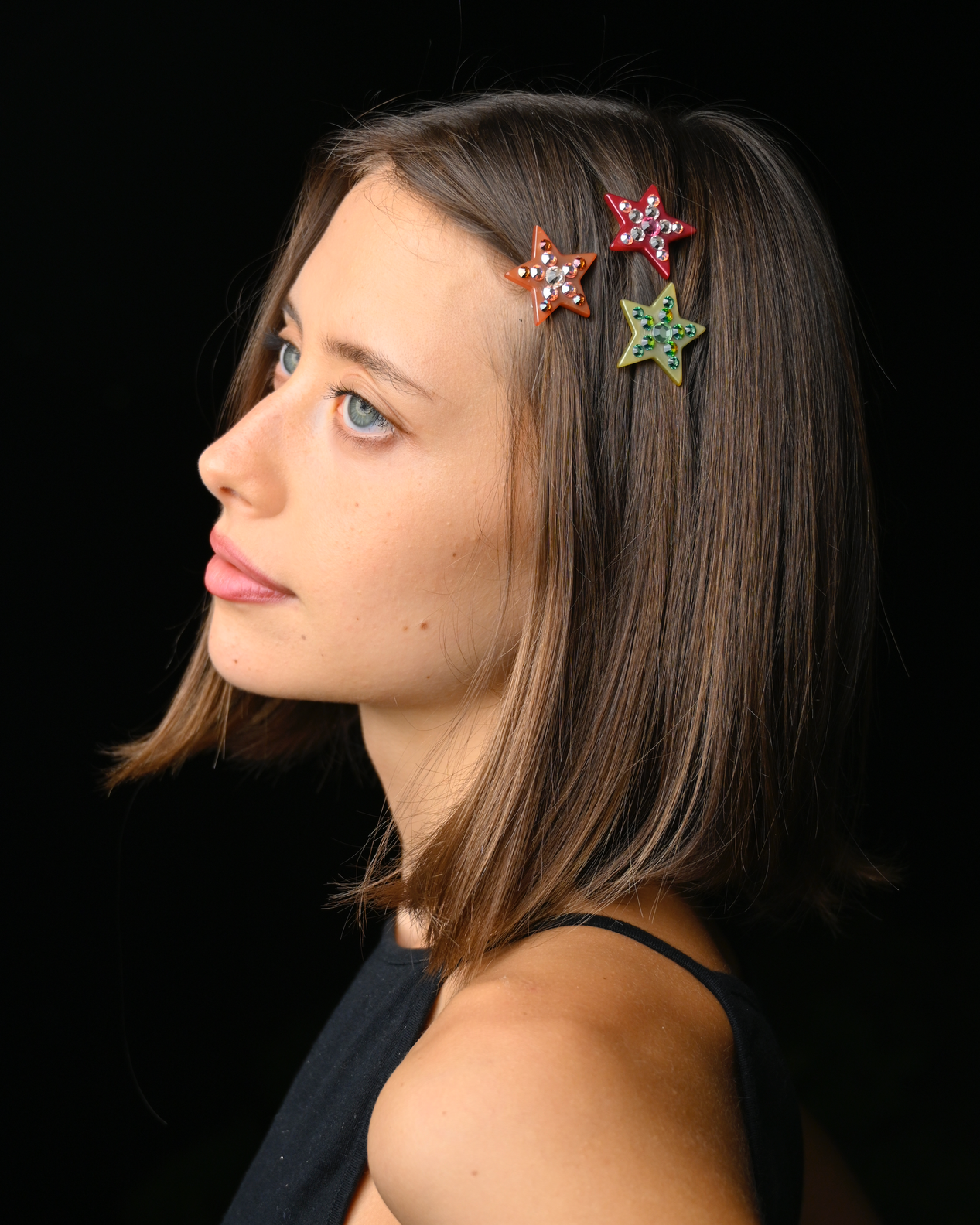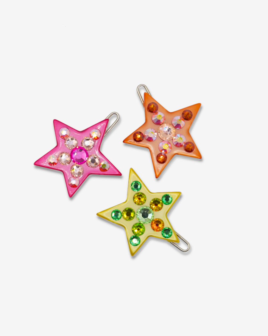 Stars in the sky and stars in your hair! Colorful lucite and crystal mini star clips.