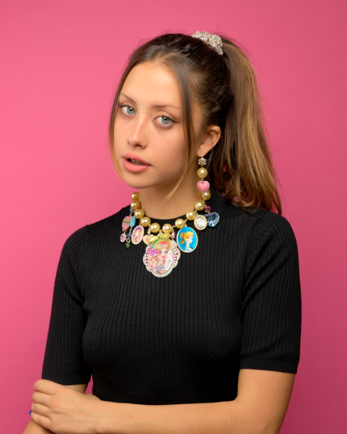 Featuring archival BARBIE X TARINA cameos and TARINA TARANTINO charms arranged in a specific pattern to lay on the neckline perfectly in place.