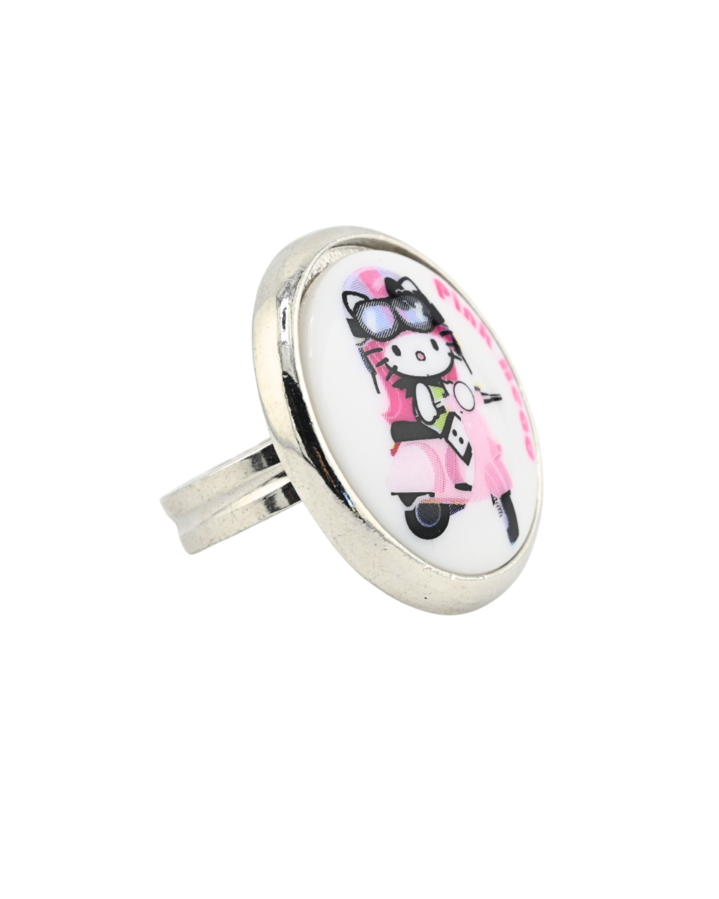 GO MOD Hello Kitty Pink Head x Tarina Tarantino collection ring features Kitty in her cutest 60's Carnaby Street MOD moments.