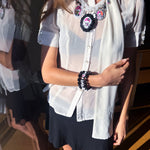 All collections are designed and handmade at Hollywood Wonderland in Los Angeles. This allows us to oversee every detail from sketch to final piece. Most of our collections feature custom-made or vintage materials chosen from our vast Sparkle Factory archives.