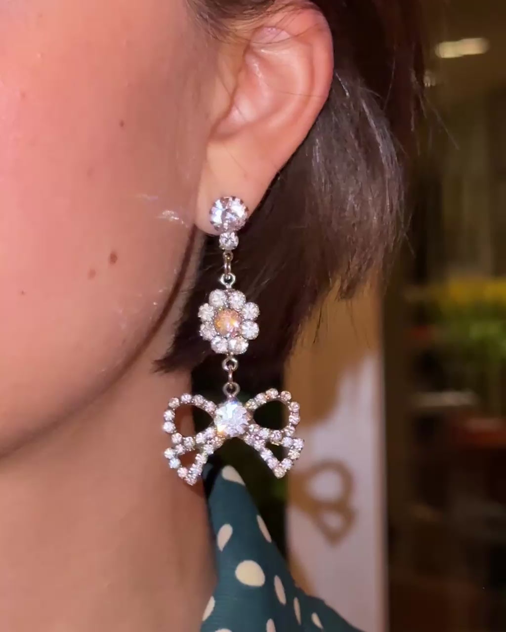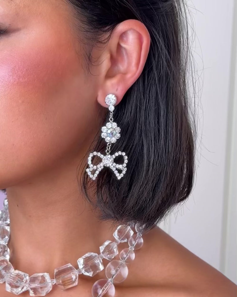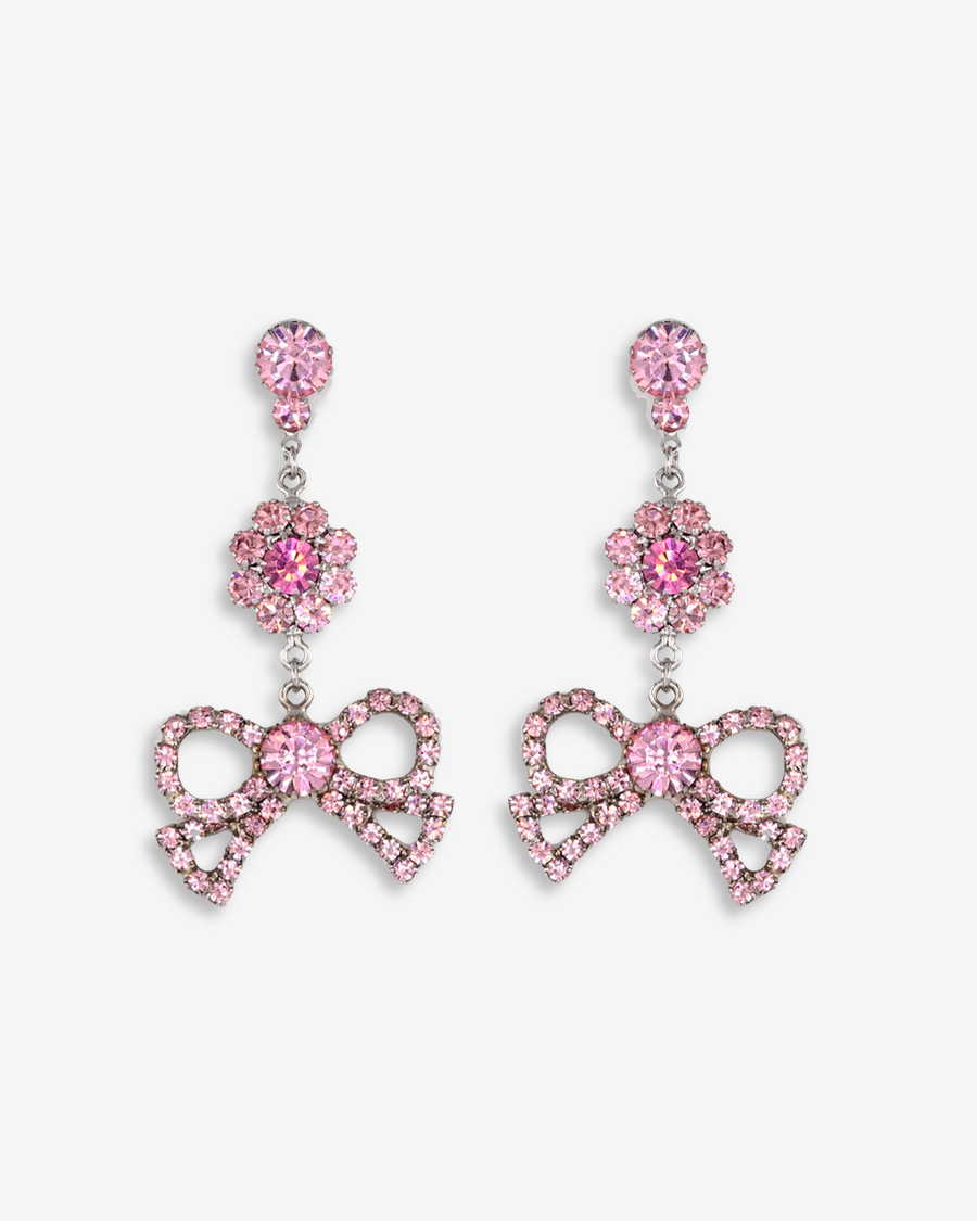 Pirouette drop earrings are simply the most gorgeous earrings you will own. Featuring our signature crystal flower and bow design in Swarovski Crystal. Heavy on sparkling effects but NOT heavy in weight these will become your go to dazzlers when you want to light up your look.