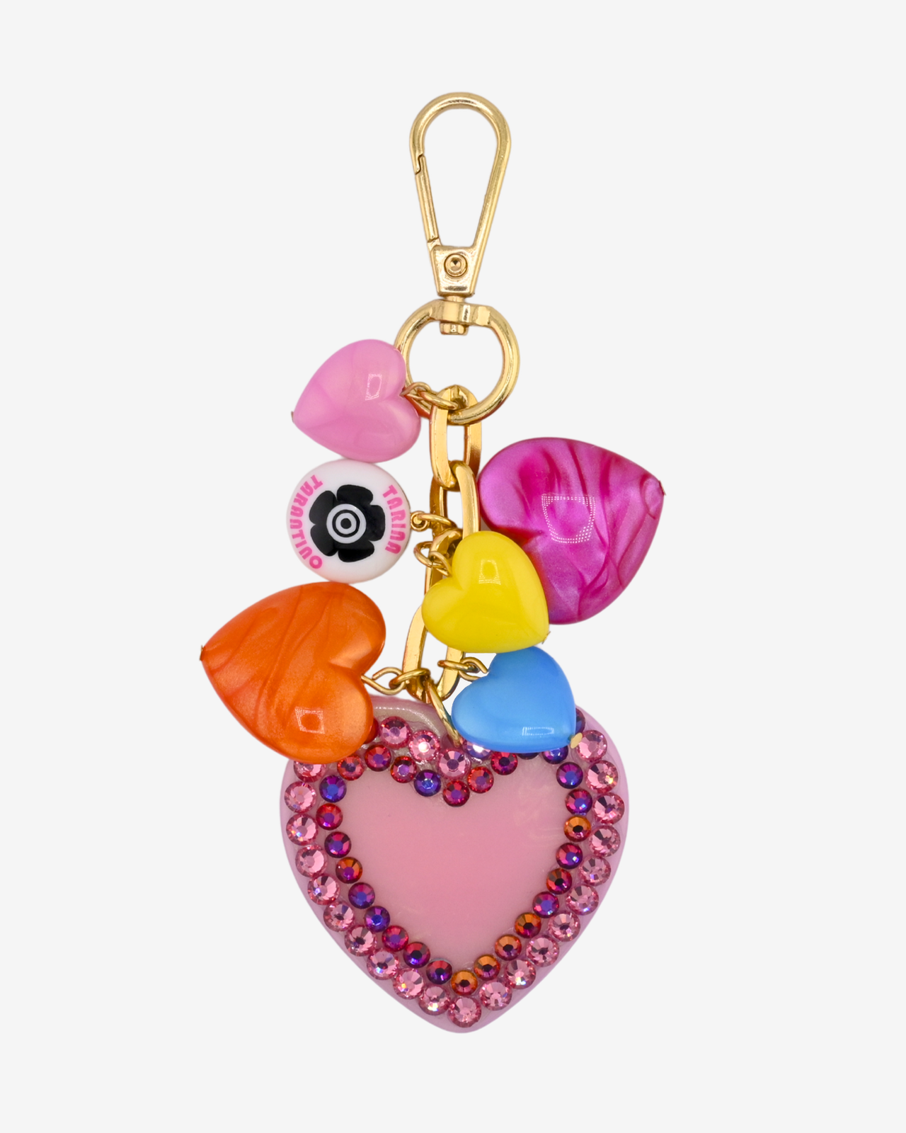 Bag charm featuring lucite hearts, Swarovski Crystal and a signature Tarina Carnaby Street charm.
