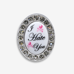 From our iconic Love / Hate collection. This ring features our exclusive custom cameo with Tarina's signature "I Hate You" artwork. Cameo is framed with Swarovski Crystal set in silver plated white metal with the highest quality adjustable band.