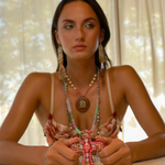 LIKE A PRAYER is a wearable piece of art. Featuring a Swarovski Crystal and Polymer Resin cross pendant hand sculpted by Tarina. Crystals are from our Swarovski archive collection selected for this season. The bead chain features Cubic Zirconia beads, Swarovski crystal and pearl beads, pressed glass and galaxy marbelized stone beads.