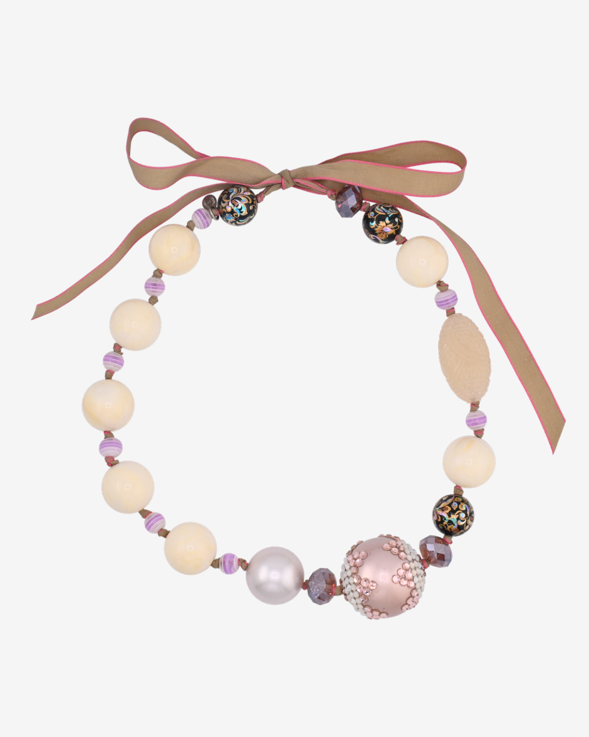 Hand-knotted beaded choker with pave crystal embellished bead.