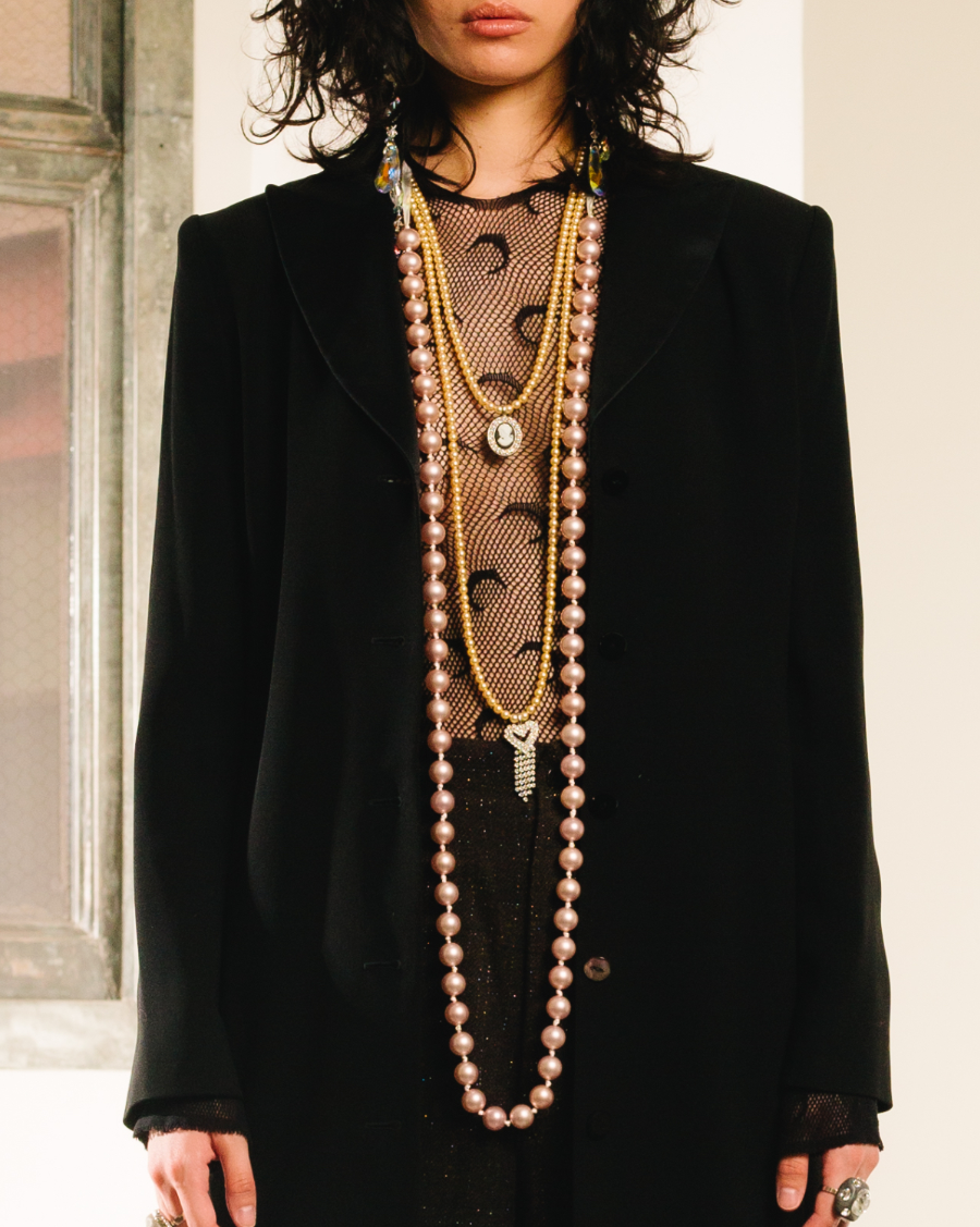 All collections are designed and handmade at Hollywood Wonderland in Los Angeles. This allows us to oversee every detail from sketch to final piece. Most of our collections feature custom-made or vintage materials chosen from our vast Sparkle Factory archives.