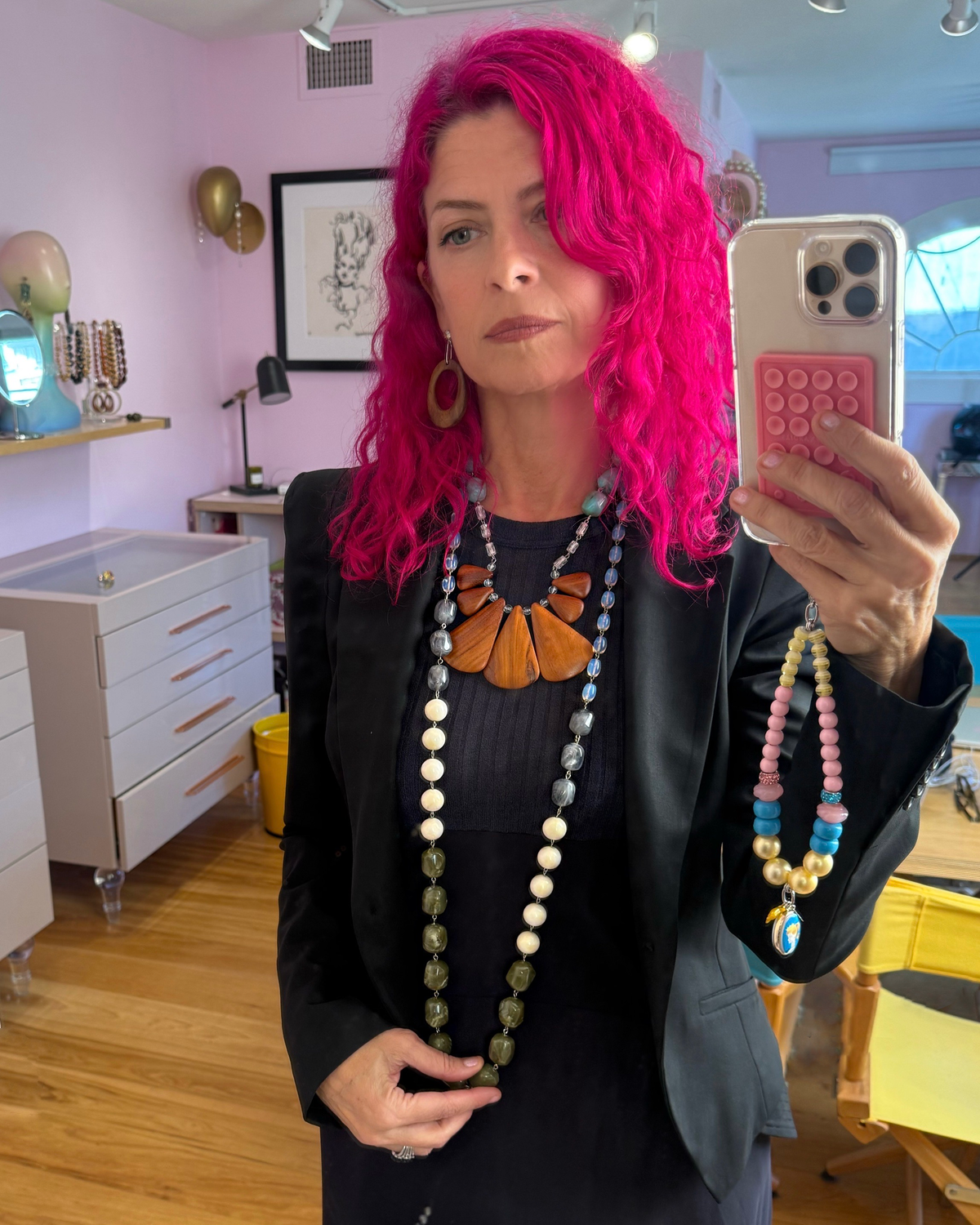 All collections are designed and handmade at Hollywood Wonderland in Los Angeles. This allows us to oversee every detail from sketch to final piece. Most of our collections feature custom-made or vintage materials chosen from our vast Sparkle Factory archives.