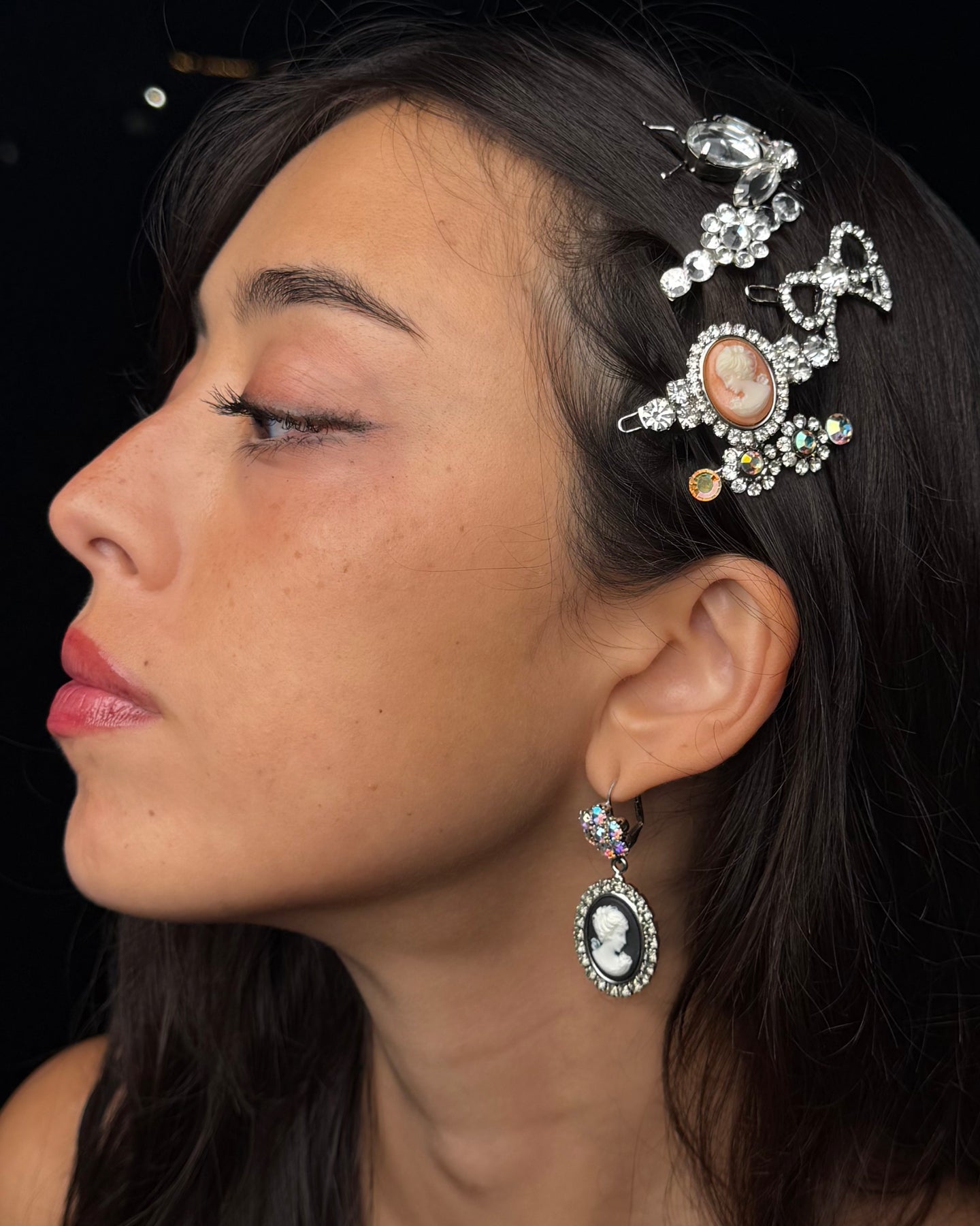 All collections are designed and handmade at Hollywood Wonderland in Los Angeles. This allows us to oversee every detail from sketch to final piece. Most of our collections feature custom-made or vintage materials chosen from our vast Sparkle Factory archives.